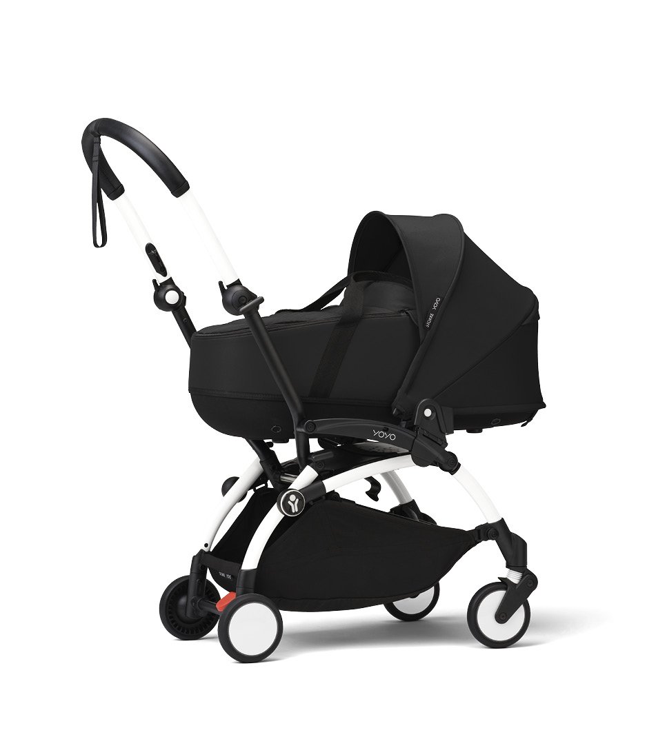 Детска количка 2 в 1 STOKKE YOYO³, с кош и цветен пакет - Черна, с Бяла рамка