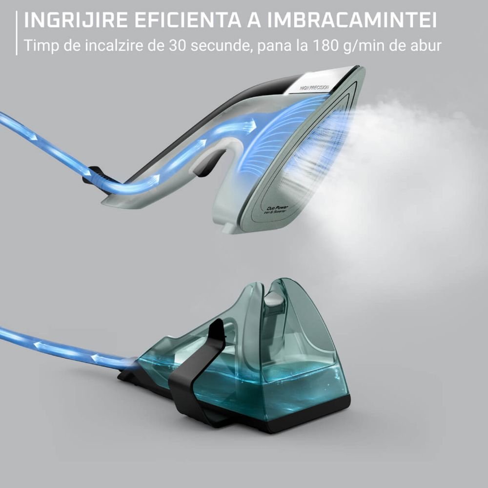 Оборудван с керамична гладеща повърхност и прецизен връх, уредът се плъзга лесно и без усилие достига до труднодостъпни места, като яки или илици. Променливата пара от 25 г/мин и мощната струя от 180 г/мин осигуряват дълбоко проникване във влакната, докато щедрият резервоар от 400 мл предлага автономност до 45 минути непрекъснато гладене. Дизайнът му е революционен, като е до 50% по-лек от традиционните ютии, което намалява умората на ръцете по време на дълги сесии. Безопасността е гарантирана от функцията за автоматично изключване и интелигентната технология, която предотвратява изгарянето на всякакъв вид материя, дори на най-деликатните тъкани.