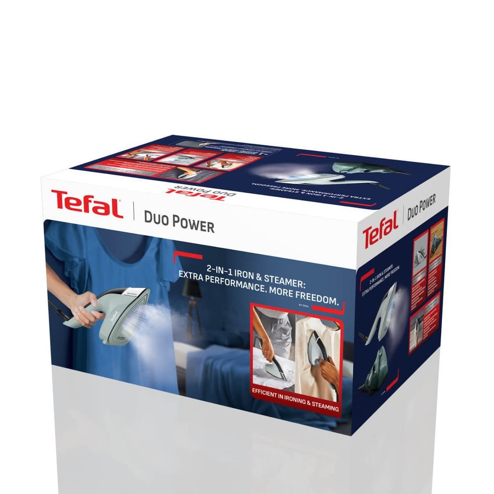 Tefal Duo Power JF4031E0 е идеалната комбинация от мощността на традиционна ютия и гъвкавостта на вертикална ютия. Това иновативно устройство 2 в 1 ви позволява бързо да превключвате от освежаване на дрехите вертикално на закачалката към гладене хоризонтално, за да премахнете упорити гънки. С мощност от 1700 W и рекордно време за загряване от само 30 секунди , Duo Power е готова за употреба точно когато имате нужда от нея, без да е необходимо да регулирате температурните настройки.
