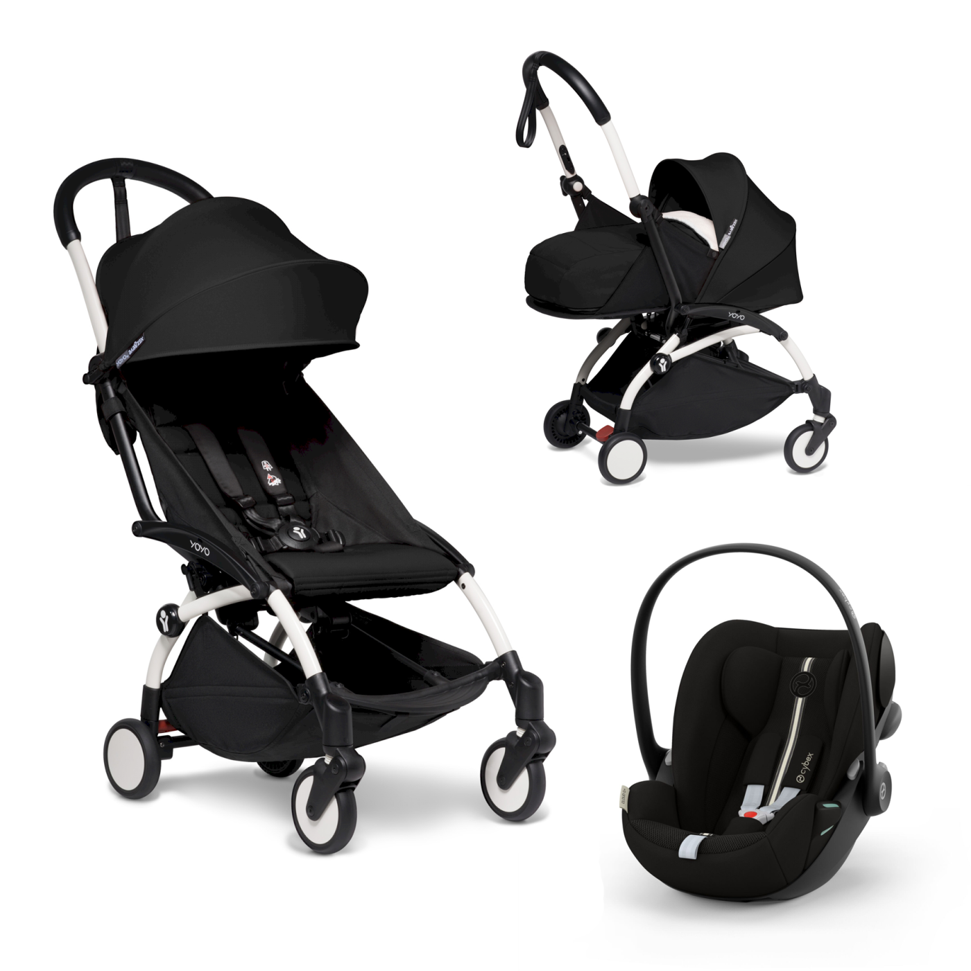 Бебешка количка BABYZEN YOYO² 3 в 1, бяла рамка, комплект за новородено, столче за кола Cloud G и черен цвят