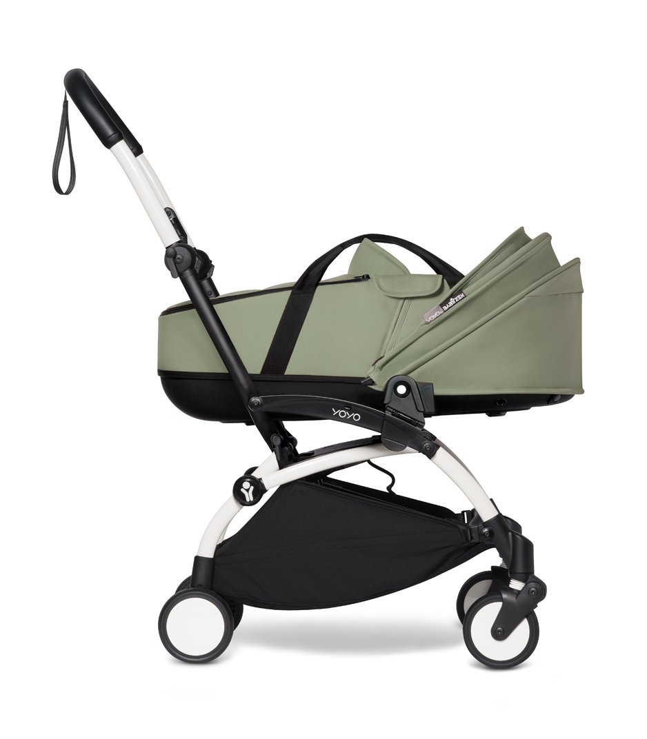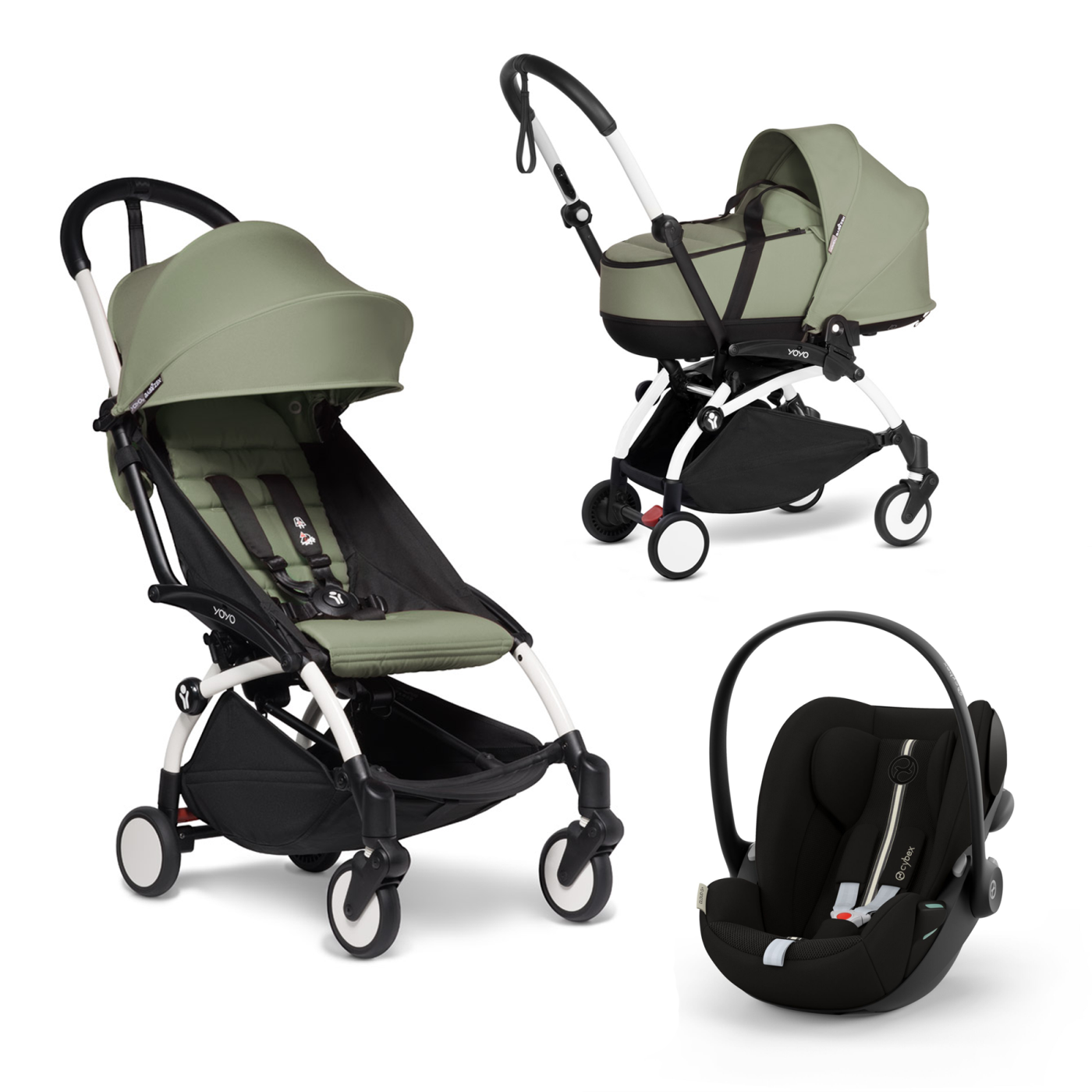 Бебешка количка BABYZEN YOYO² 3 в 1, бяла рамка, с кош за носене, столче за кола Cloud G и пакет Olive цвят