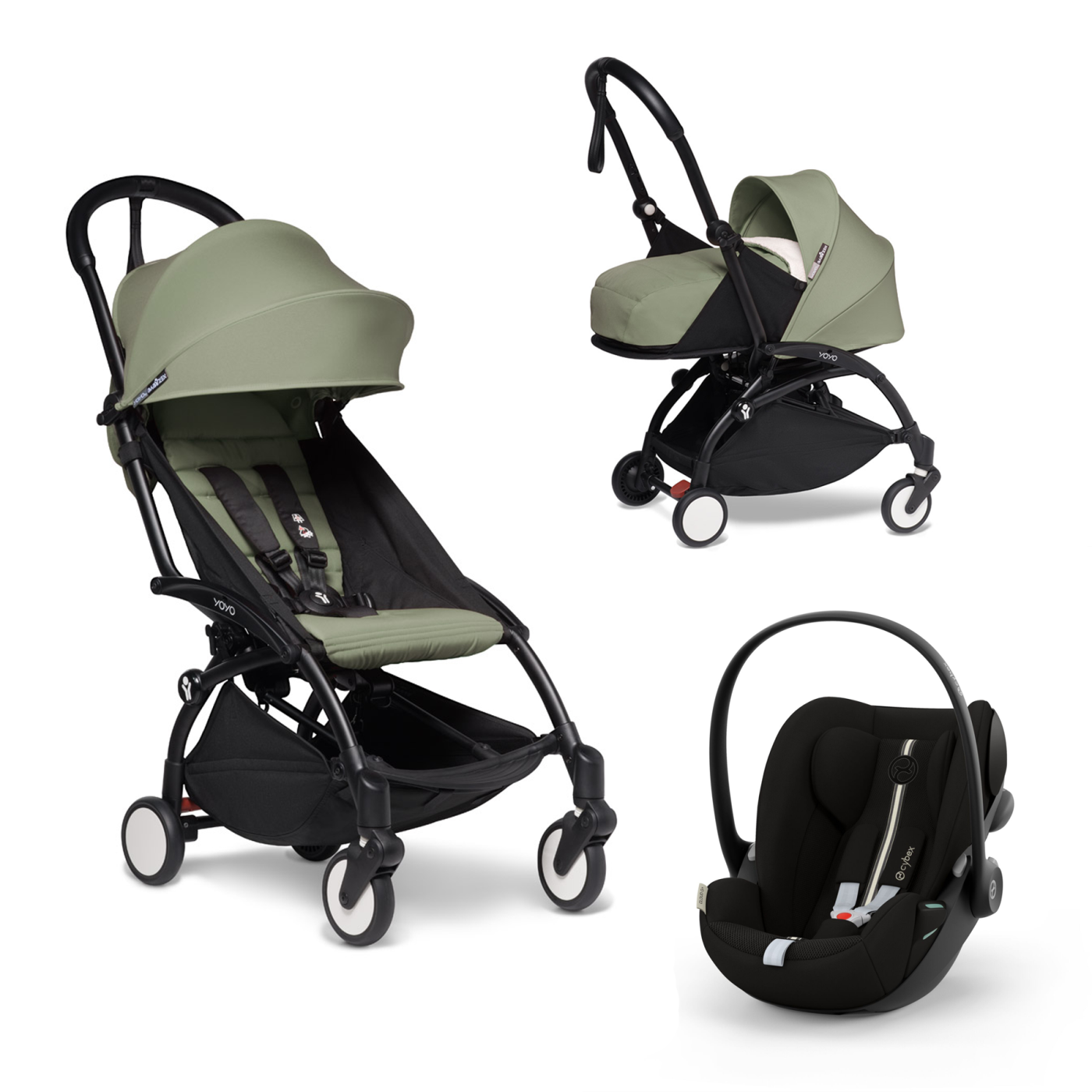 Бебешка количка BABYZEN YOYO² 3 в 1, черна рамка, комплект за новородено, столче за кола Cloud G и комплект цвят Olive