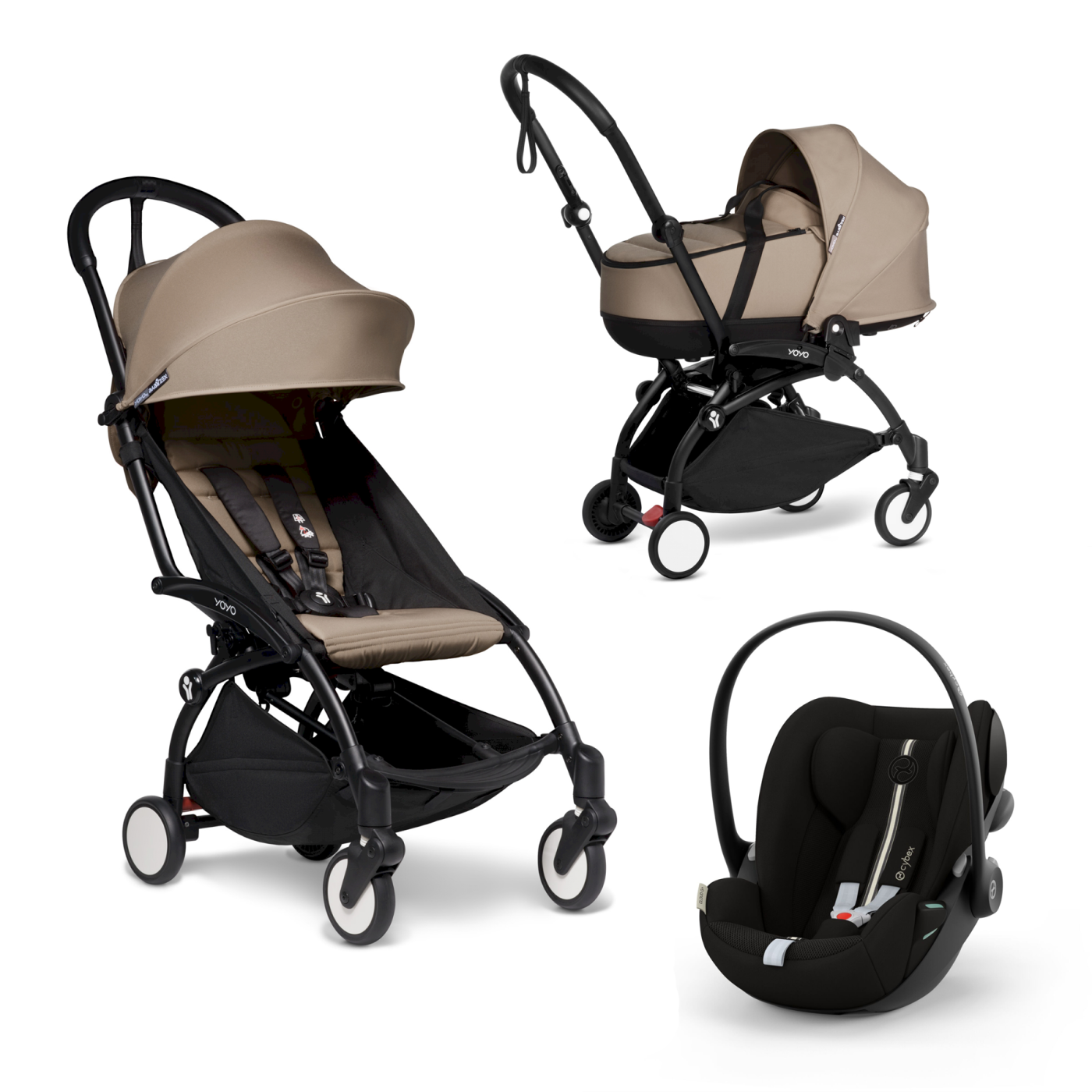 Бебешка количка BABYZEN YOYO² 3 в 1, черна рамка, с кош за носене, столче за кола Cloud G и цветен пакет Taupe