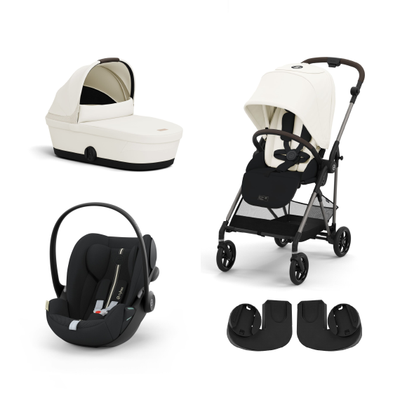 Детска количка 3 в 1 Cybex Melio, колекция 2024, с кош и кора Cloud G Plus, Canvas White
