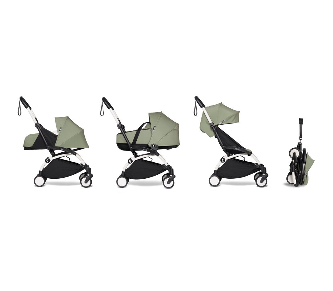 Детска количка BABYZEN YOYO² 3 в 1, бяла рамка, с пакет за новородено, количка и пакет Olive color