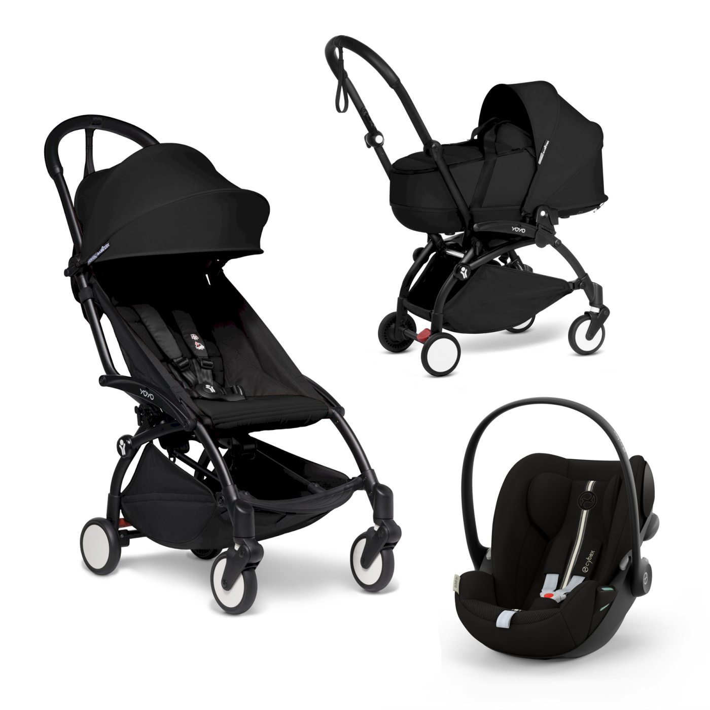 Пакетът YOYO² включва черна рамка, кош за новородено (цвят по ваш избор), столче за кола Cloud G Plus и пакет 6+ цвята (цвят по ваш избор). Изработена от висококачествени материали като алуминиева сплав, неръждаема стомана и пластмаси, пълни с фибростъкло, количката YOYO² е едновременно здрава и лека, способна да издържи на няколко поколения. Също така, всички продукти и аксесоари, които са съвместими с модела YOYO², са съвместими и с предишния модел YOYO+.