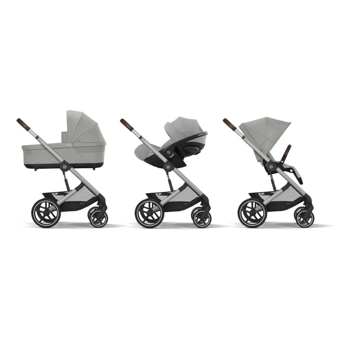Детска количка Balios S Lux 4 в 1, с кош за носене, столче за кола Cloud G Plus и база G, цвят Stone Grey със сребриста рамка
