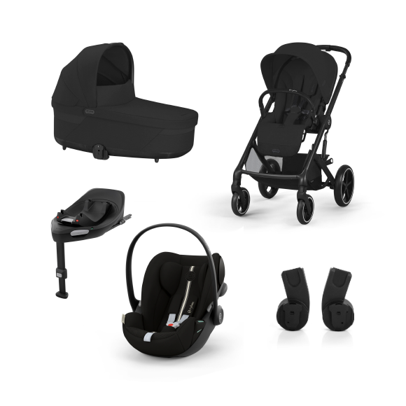 Детска количка 4 в 1 Balios S Lux, с кош за носене, столче за кола Cloud G Plus и база G, цвят Moon Black с черна рамка