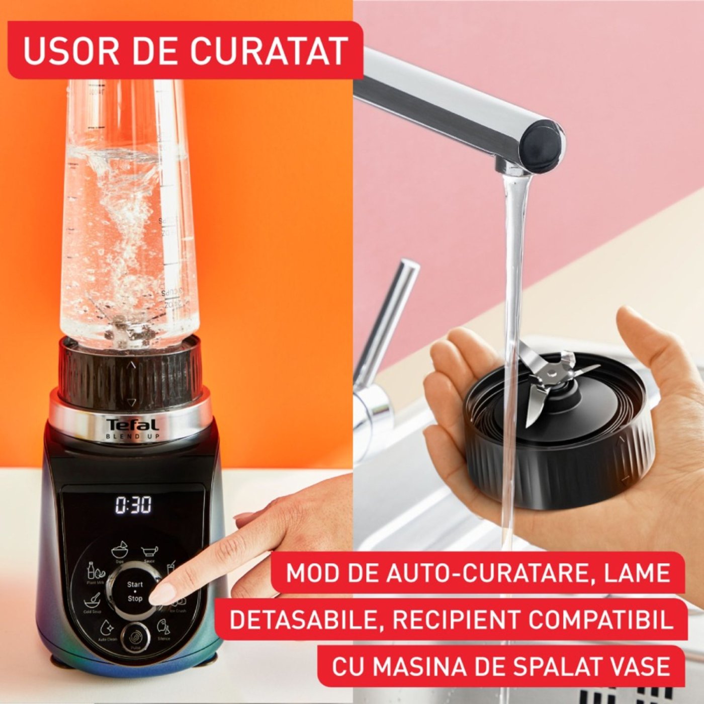 Оборудван с 8 интелигентни автоматични програми, Tefal Blend Up адаптира скоростта и времето за смесване за перфектни резултати без усилие, докато функцията за самопочистване ви спестява време и енергия при довършване на приготвянето.