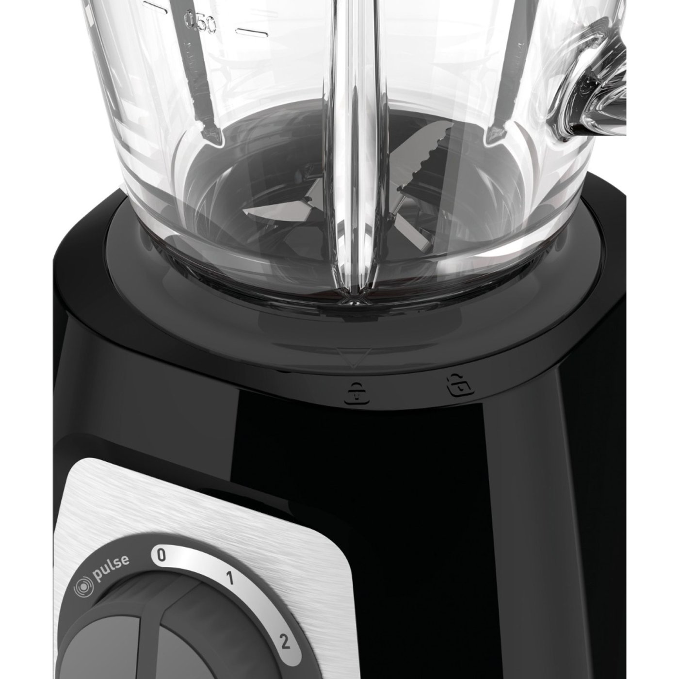 Стъкленият контейнер с вместимост 1,75 л, устойчив на температури до 80°C, включва градуиран съд за прецизно дозиране. Ергономичният дизайн с неплъзгащ се контролен бутон, интуитивна дръжка и вендузи за стабилност прави блендера безопасен и удобен за употреба, дори за твърди съставки или лед.