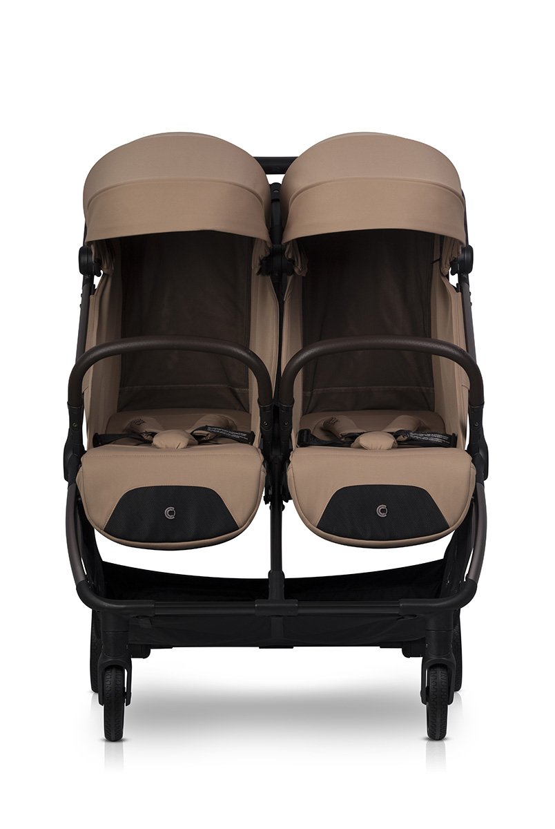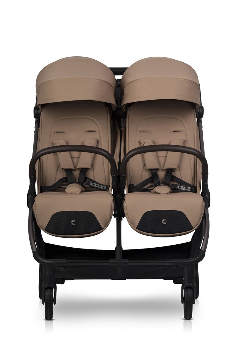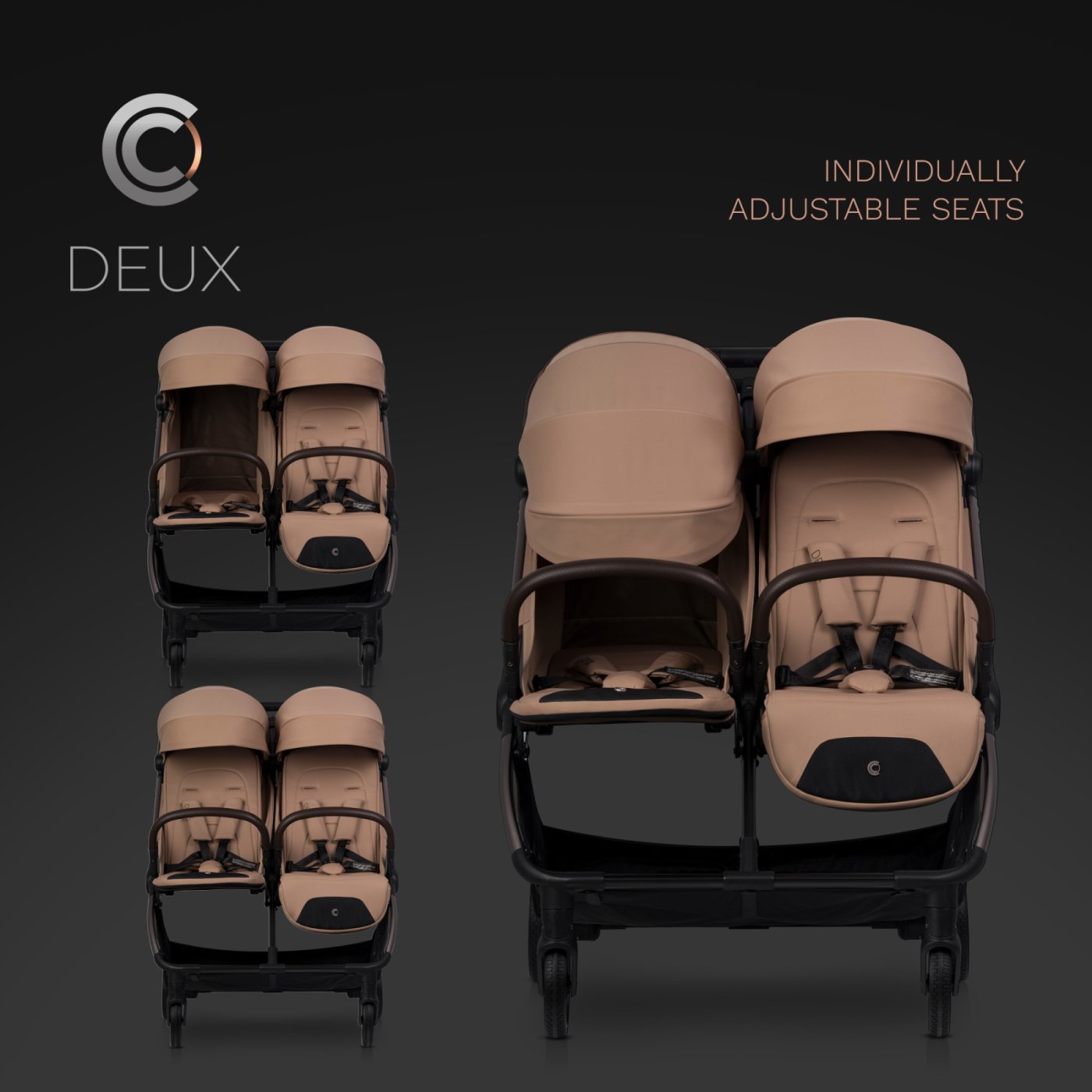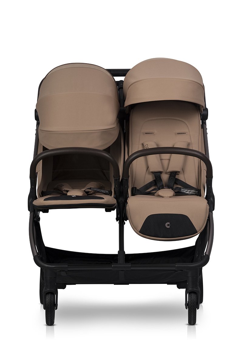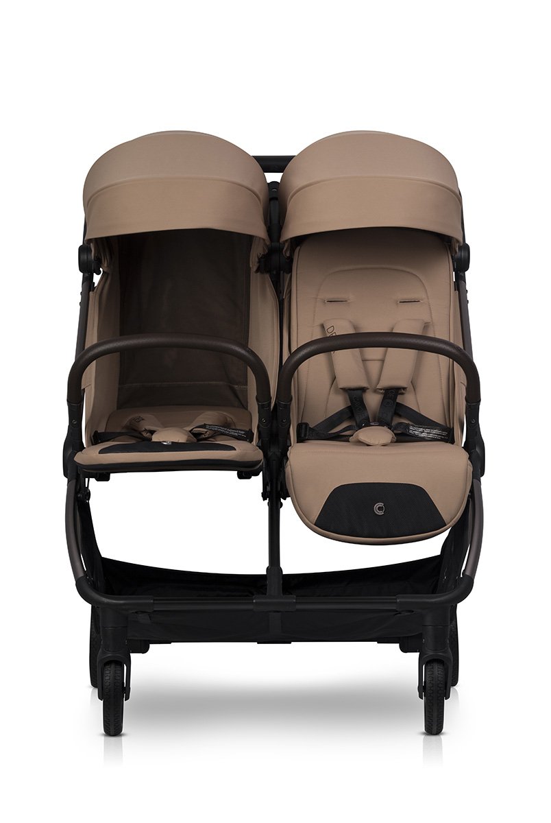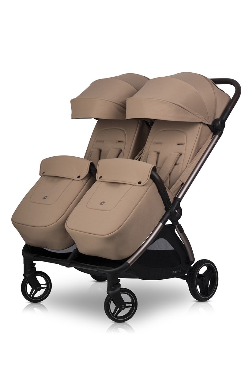 Открийте количката Cavoe Deux Chocolate за близнаци и братя и сестри. Тя предлага компактен дизайн, автоматична система за сгъване DUAL FOLD, гел колела с окачване и удобни седалки, издържащи до 22 кг всяка. Изберете комфорт, безопасност и елегантност при всяка разходка!