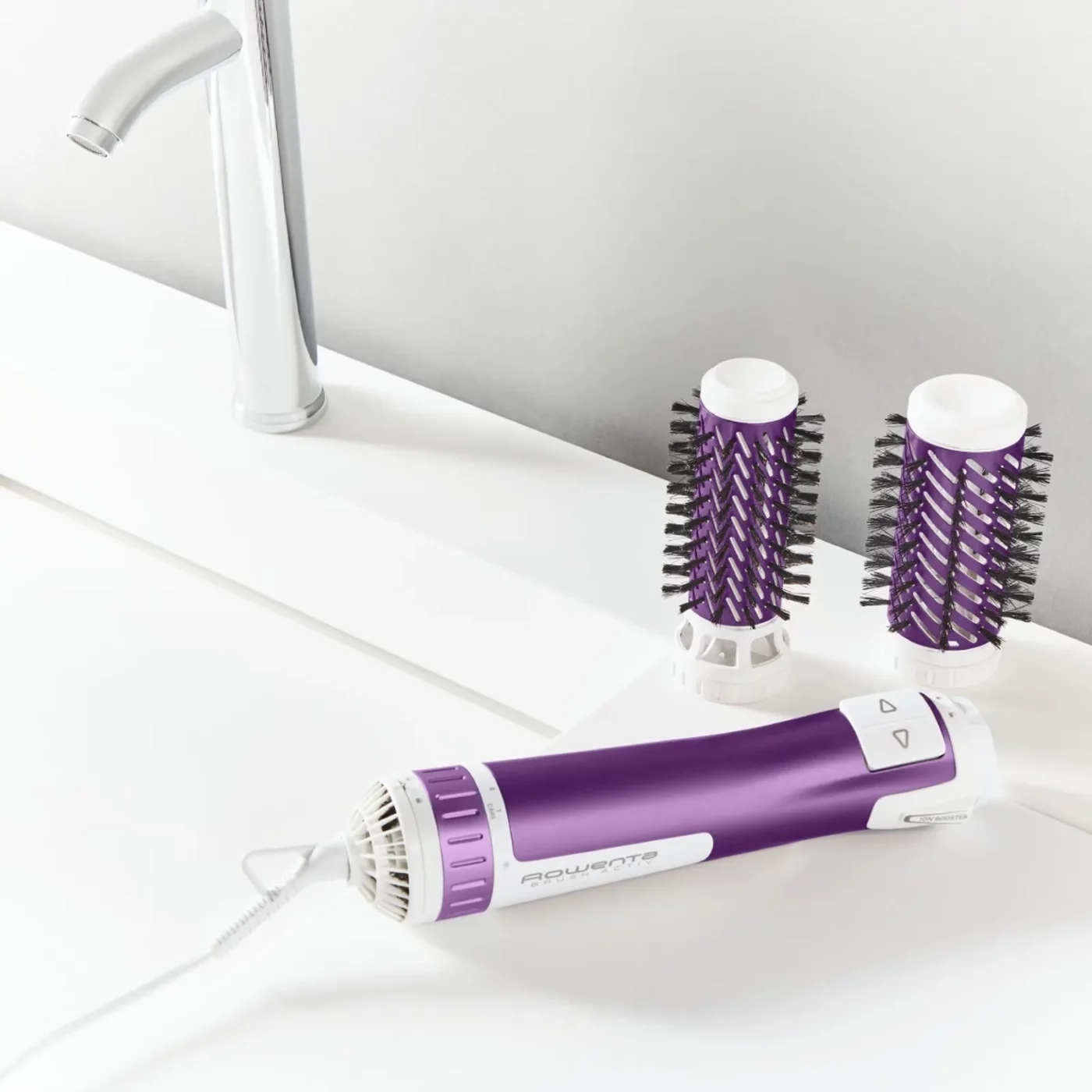 Максимална ефективност за всяка дължина на косата: Двете въртящи се четки с размери 40 мм и 50 мм са идеални за дълга или къса, гъста или тънка коса;