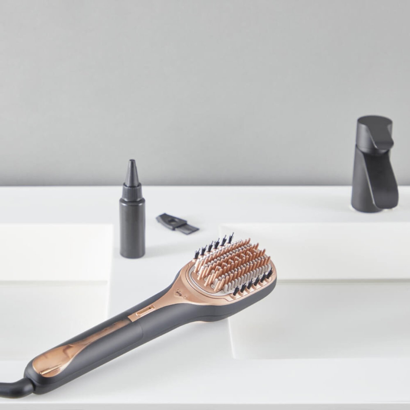 Rowenta Hair Therapist™ CF9940F0 е иновативно устройство за възстановяване на увредена коса, разработено след над 7 години изследвания и тестове. Проектирано за дълбока грижа, това устройство не е четка за изправяне или стилизиране, а усъвършенствано решение за възстановяване на косъма, с видими резултати още от първата употреба.