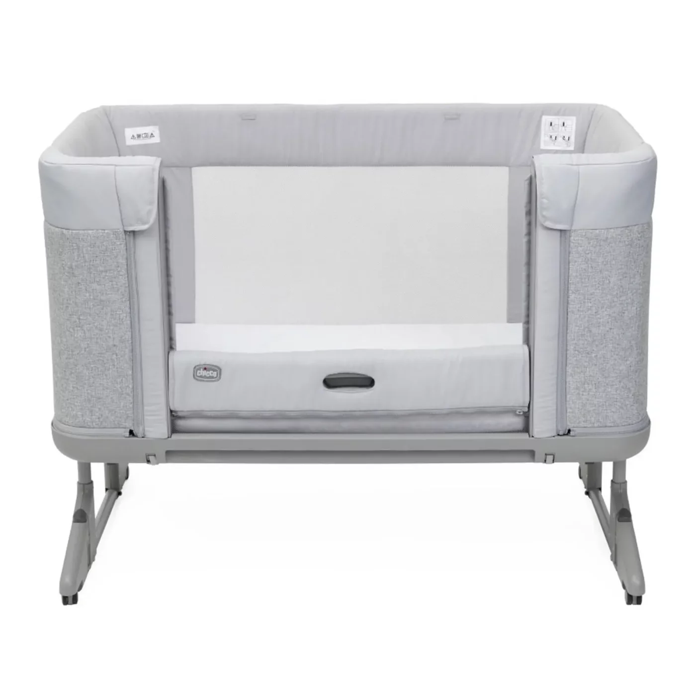 Chicco Next 2 Me е детско креватче, което се адаптира към легла с чекмеджета или без крака, благодарение на сгъваемите си крака.