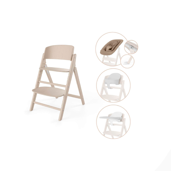 Основната характеристика на този стол е способността му да се адаптира към различните етапи от растежа на детето. Комплектът 4 в 1 включва: