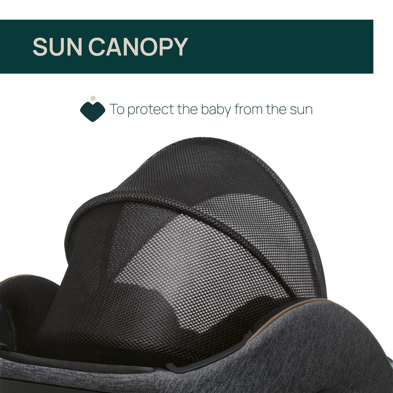 Въртяща се на 360° основа - Позволява завъртане на столчето към вратата на колата, за да се улесни поставянето и обезопасяването на детето, осигурявайки практично и удобно използване за родителите.