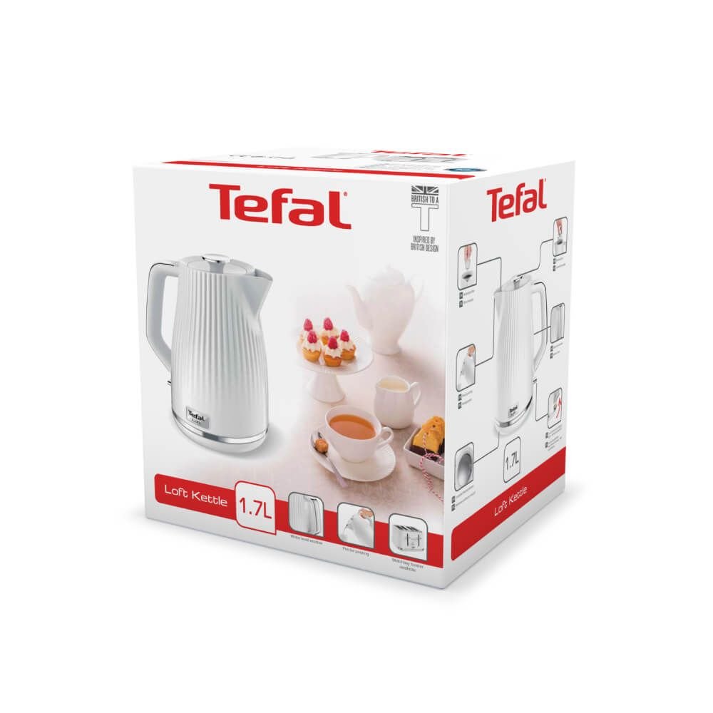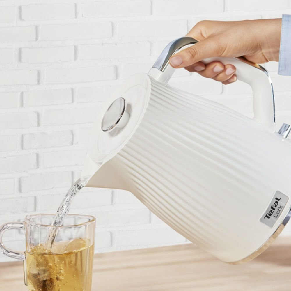 Добавете нотка класическа елегантност към кухнята си с електрическата кана Tefal Loft KO250130 , вдъхновена от традиционния дизайн на британските съдове за хранене. С текстурирана повърхност, напомняща фина керамика, и изискани хромирани акценти, тази кана е акцент на всеки кухненски плот, съчетавайки вечен стил с модерна производителност.