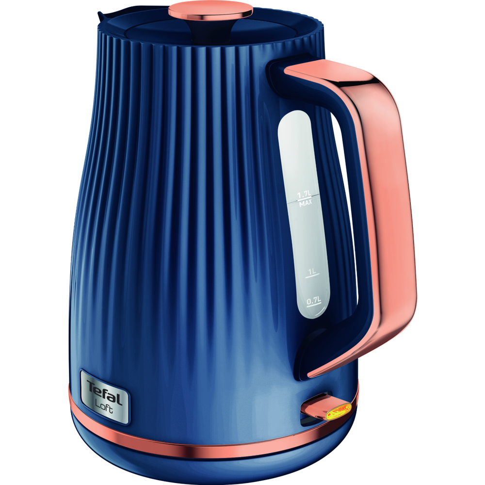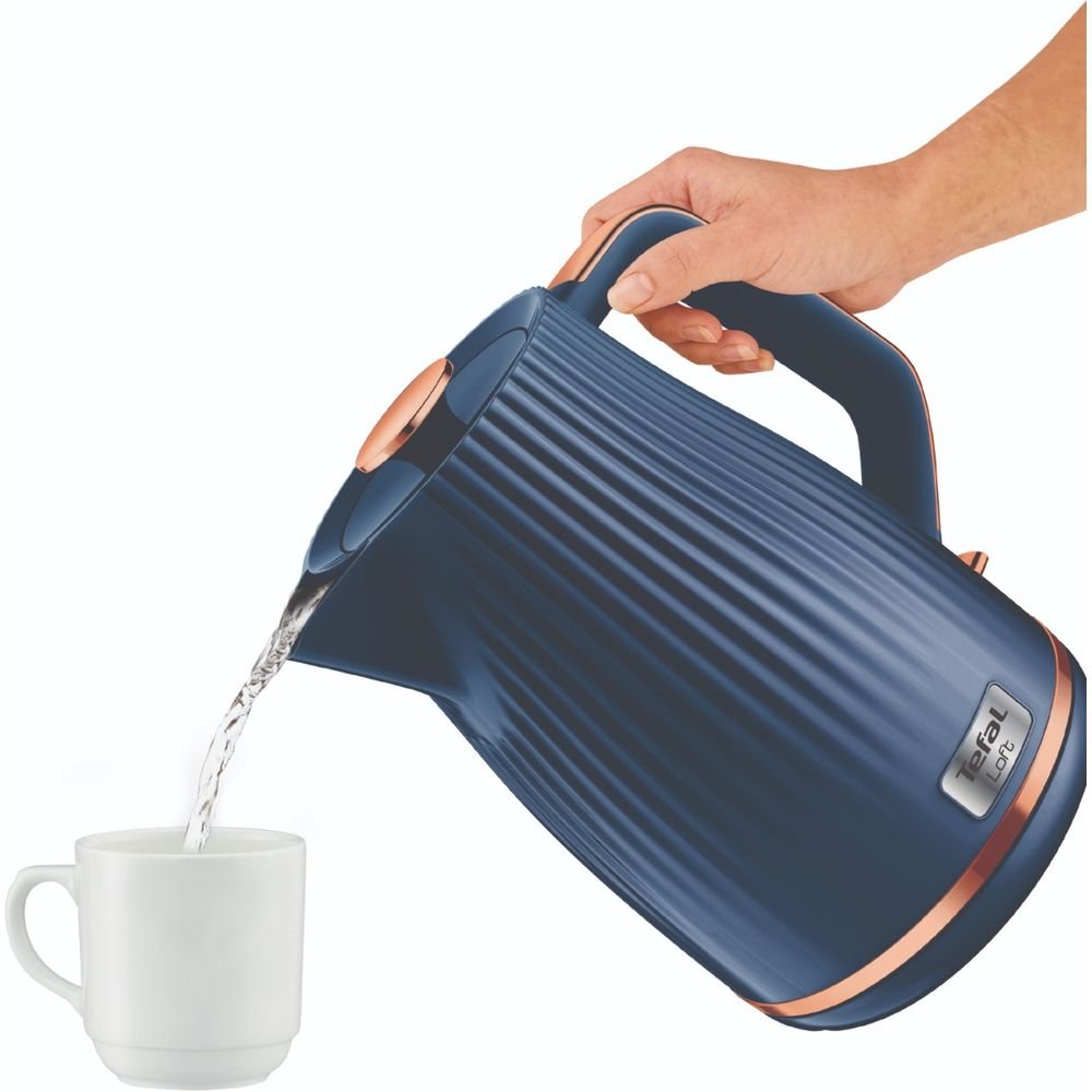 Електрическа кана Tefal Loft KO251430, 2400W, 1.7L, Керамичен дизайн, Филтър против котлен камък, Подвижен капак, Син