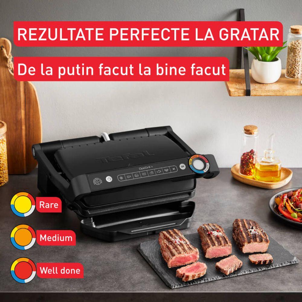 Насладете се на бързо и вкусно готвене с електрическата скара Tefal OptiGrill+ GC717810. С мощност 2000 W и шест автоматични програми за готвене – включително за бургери, пилешко месо, сандвичи, наденички, червено месо и риба – тази интелигентна скара автоматично настройва времето и температурата за перфектни резултати всеки път. Подвижните плочи за готвене и тавата за отцеждане улесняват почистването, а съвместимостта със съдомиялна машина прави поддръжката лесна. Индикаторът за автоматично готвене и функцията за замразени храни предлагат максимално удобство в кухнята, а компактният и елегантен черен дизайн се вписва идеално във всяко пространство. Дължината на кабела 1,2 м и интелигентната скара с автоматичен сензор допълват безстресовото готвене.