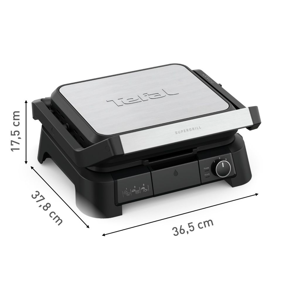 Открийте Tefal SuperGrill 3 в 1 GC510DE0 , многофункционалната електрическа скара, която превръща кухнята ви в истинска лаборатория за грил. С мощност 2000 W и 3 режима на употреба (контактна скара, барбекю и режим на фурна) , можете да приготвите перфектно сготвено месо, зеленчуци или сандвичи по всяко време. Регулируемият термостат с 3 температурни настройки ви дава пълен контрол върху готвенето, а подвижните плочи с незалепващо покритие и тавата за събиране на капки правят почистването изключително лесно. Щедрата повърхност от 600 см² и възможността за вертикално съхранение я правят идеална за семейства или вечери с приятели. Идеална за вкусни, бездимни и лесни за приготвяне ястия — електрическата скара Tefal SuperGrill 3 в 1 гарантира вкусни резултати всеки път.