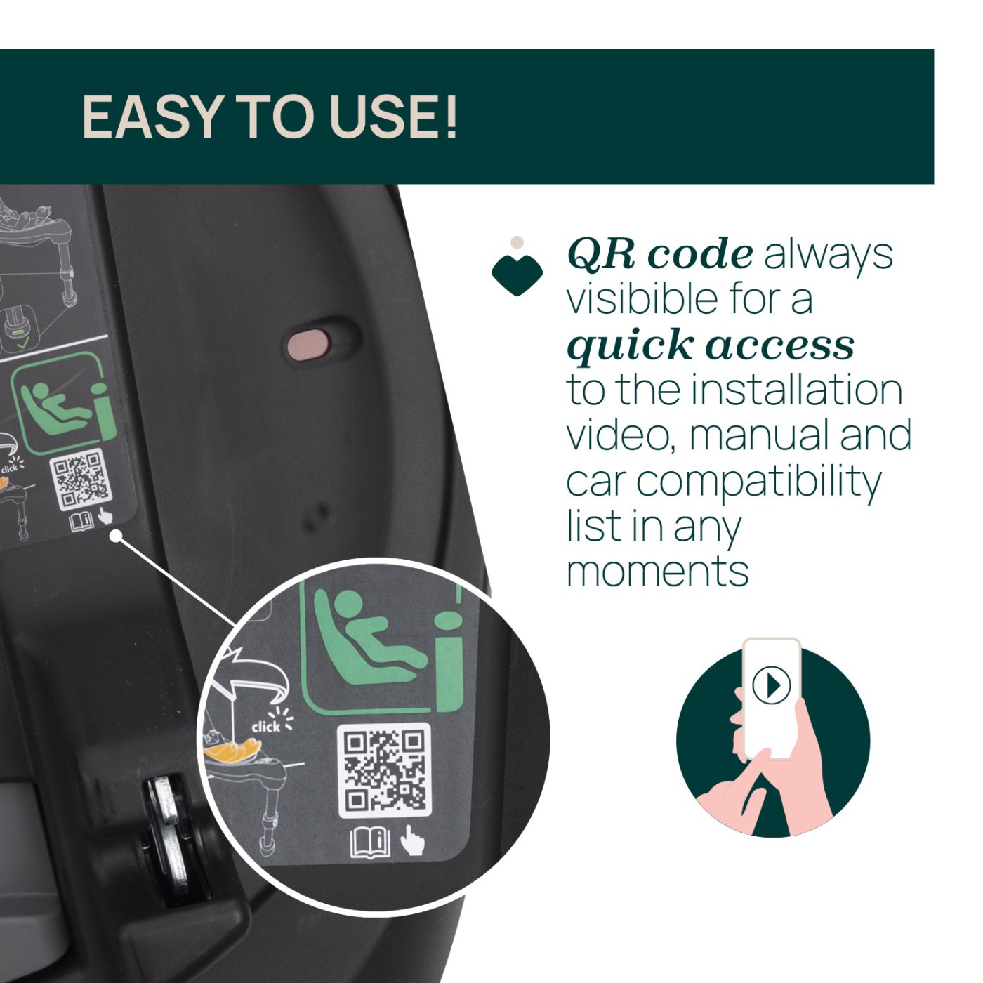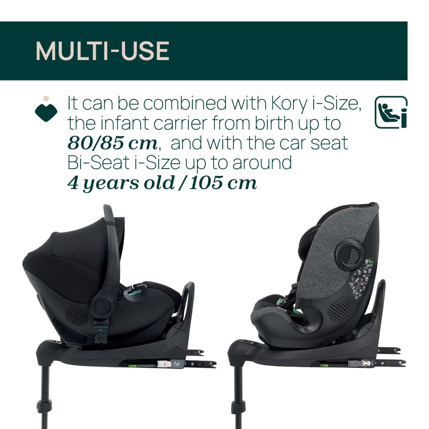 Базата за кола е съвместима със седалки Kory Essential i-Size (40–80 см), Kory Plus i-Size (40–85 см) и Bi-Seat i-Size (61–150 см).