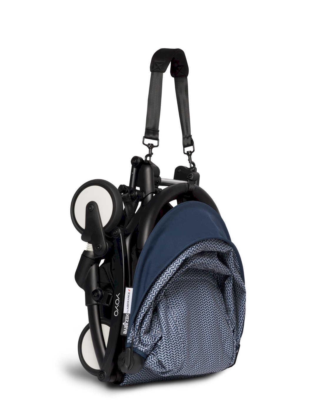 Детска количка за близнаци BABYZEN YOYO² CONNECT, двойна, с черна рамка и цветен пакет Air France Blue