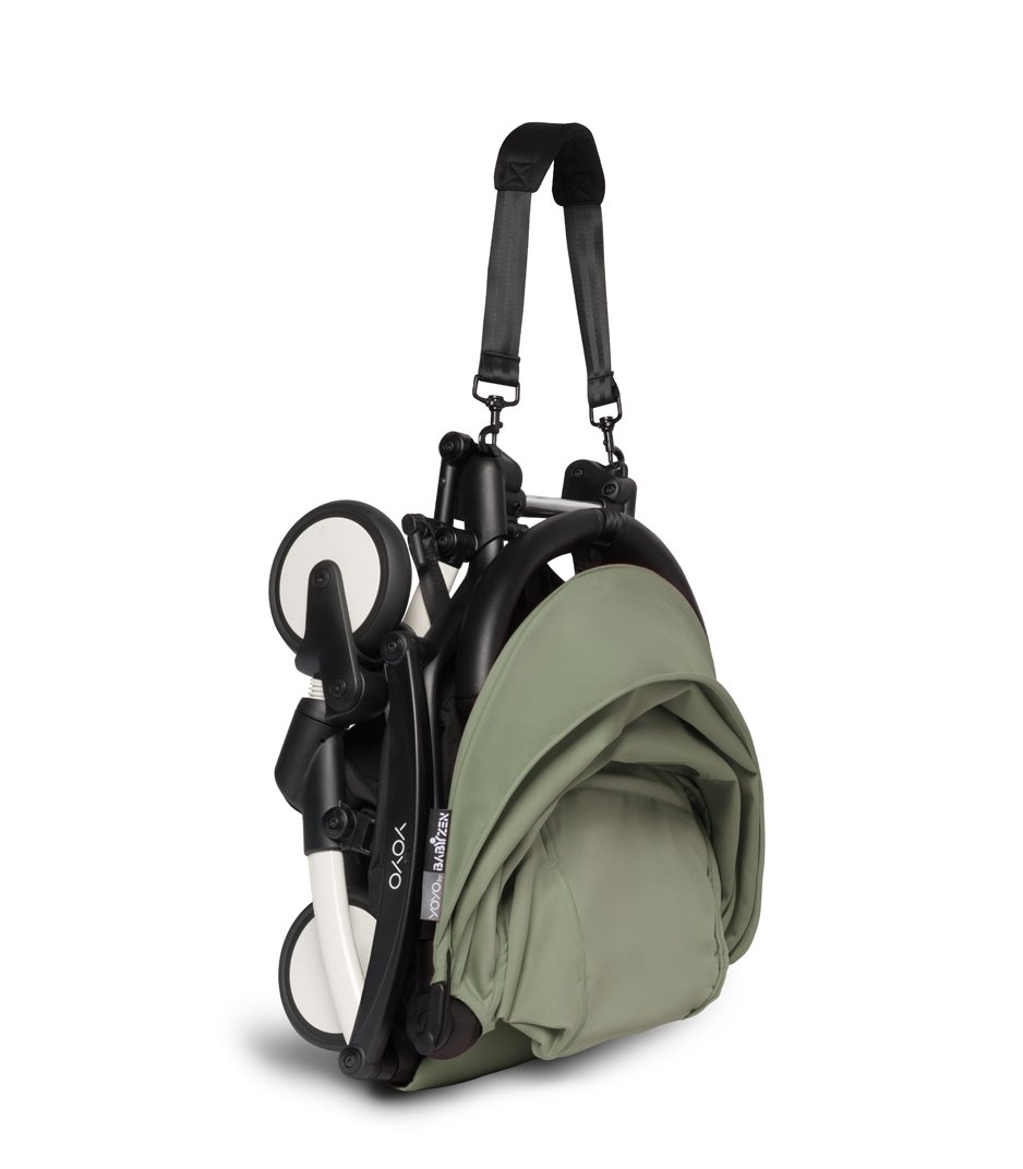 Детска количка за близнаци BABYZEN YOYO² CONNECT, двойна, с бяла рамка, кош за кош и пакет цвят Olive
