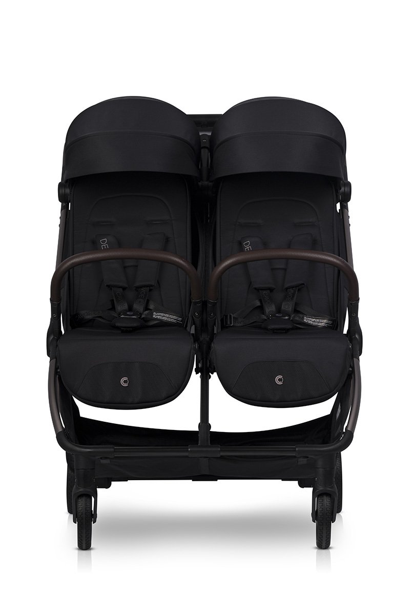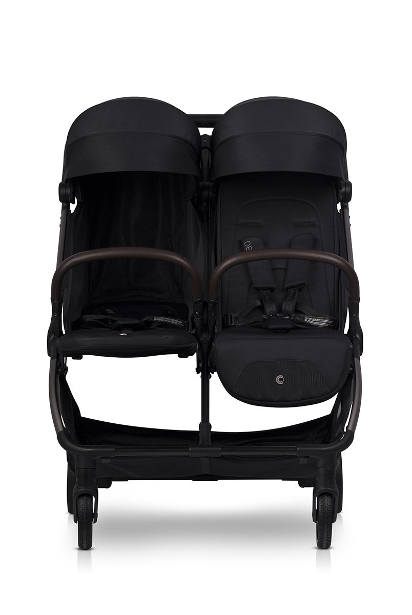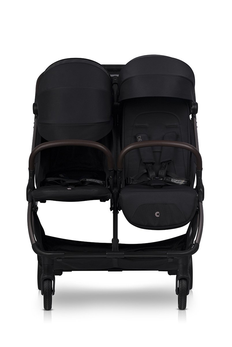 Двоен комфорт в ултракомпактен формат Cavoe Deux Chocolate е идеалното решение за родители на близнаци или братя и сестри на подобна възраст, които не искат да правят компромис между комфорта на децата си и лекотата на управление. С модерен дизайн и първокласни покрития в шоколадови нюанси, тази количка се откроява с оптимизираната си ширина, която позволява преминаване през повечето стандартни врати, като същевременно запазва щедро пространство и за двамата пътници.