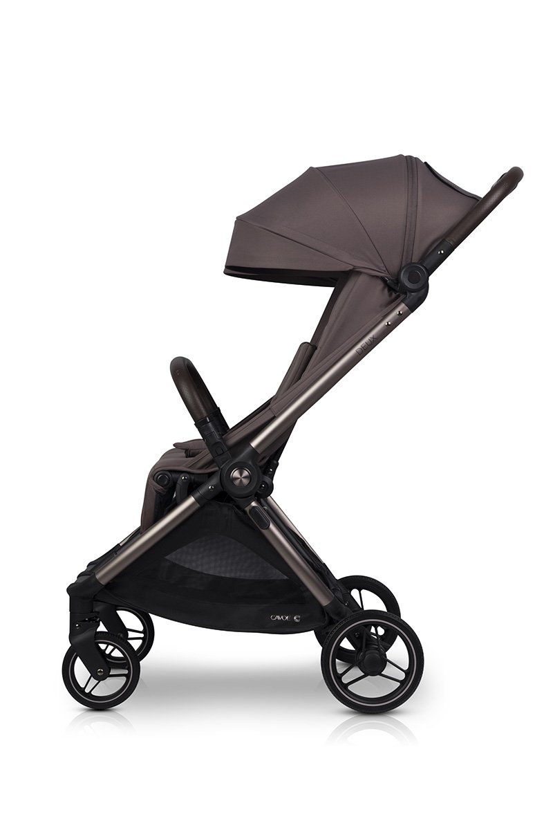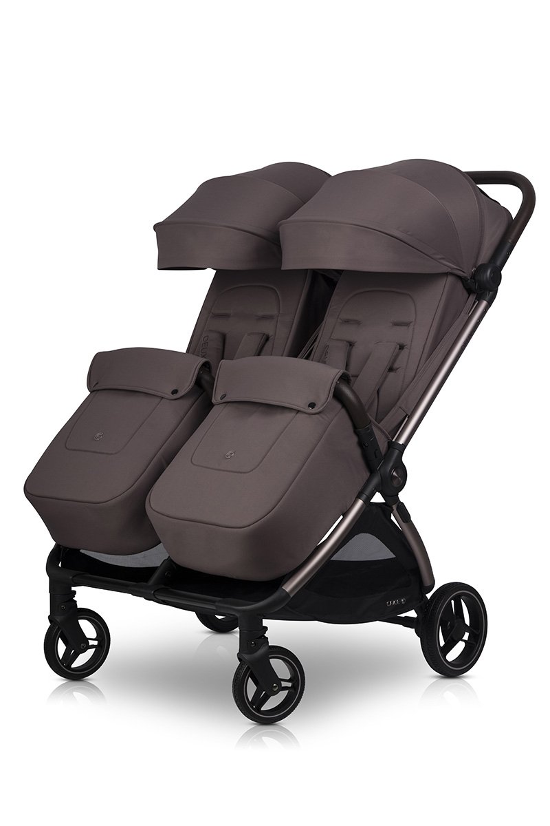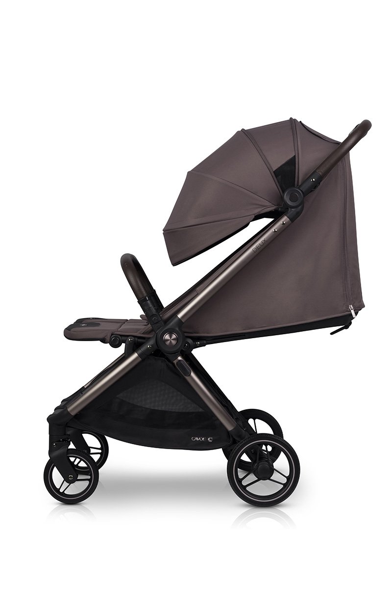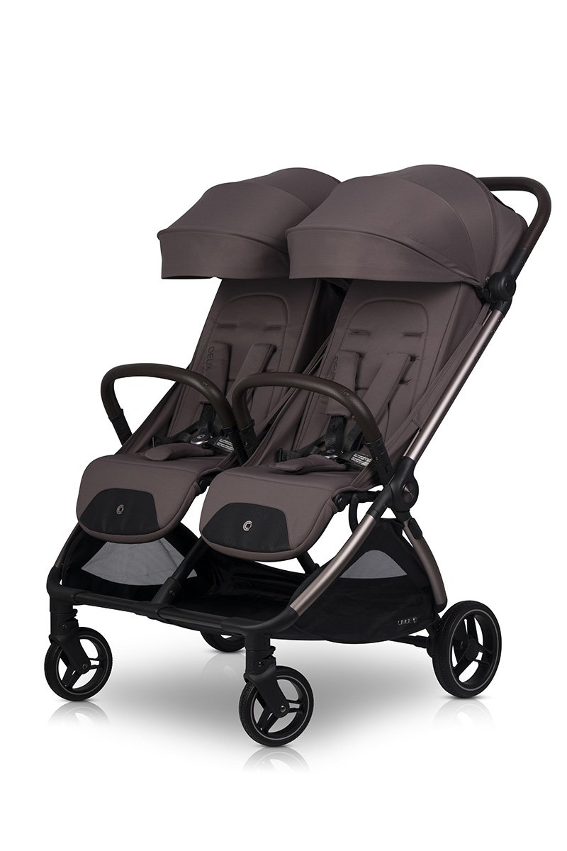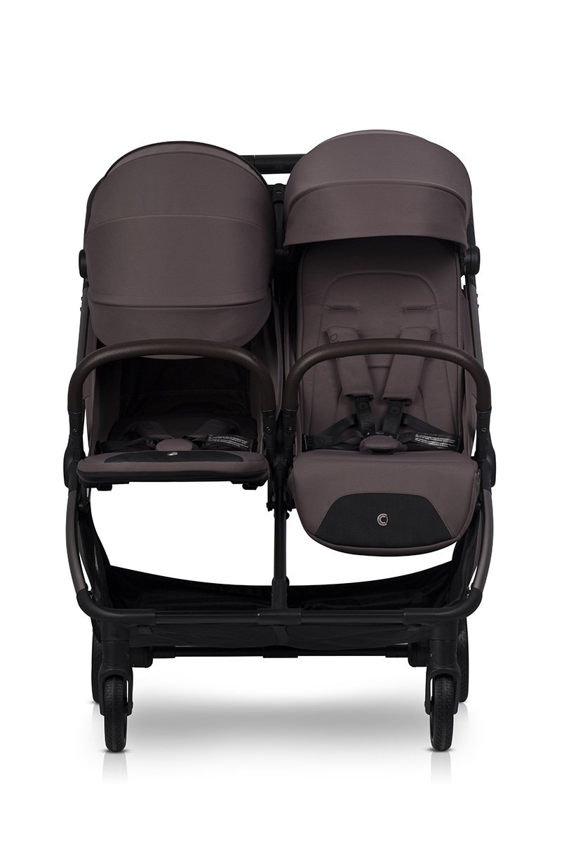 Открийте количката Cavoe Deux Chocolate за близнаци и братя и сестри. Тя предлага компактен дизайн, автоматична система за сгъване DUAL FOLD, гел колела с окачване и удобни седалки, издържащи до 22 кг всяка. Изберете комфорт, безопасност и елегантност при всяка разходка!