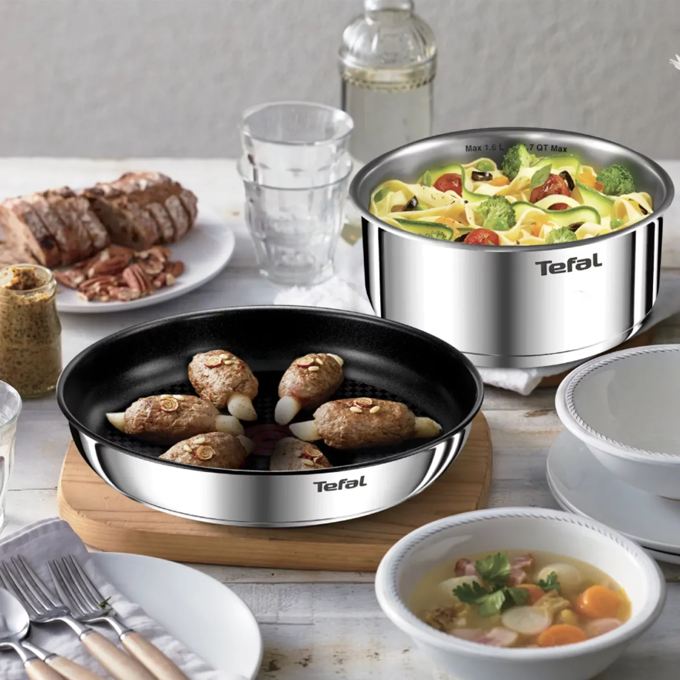 Tefal Ingenio Easy Cook & Clean комплект от 10 части, подвижни дръжки, незалепващо покритие и термосигнал