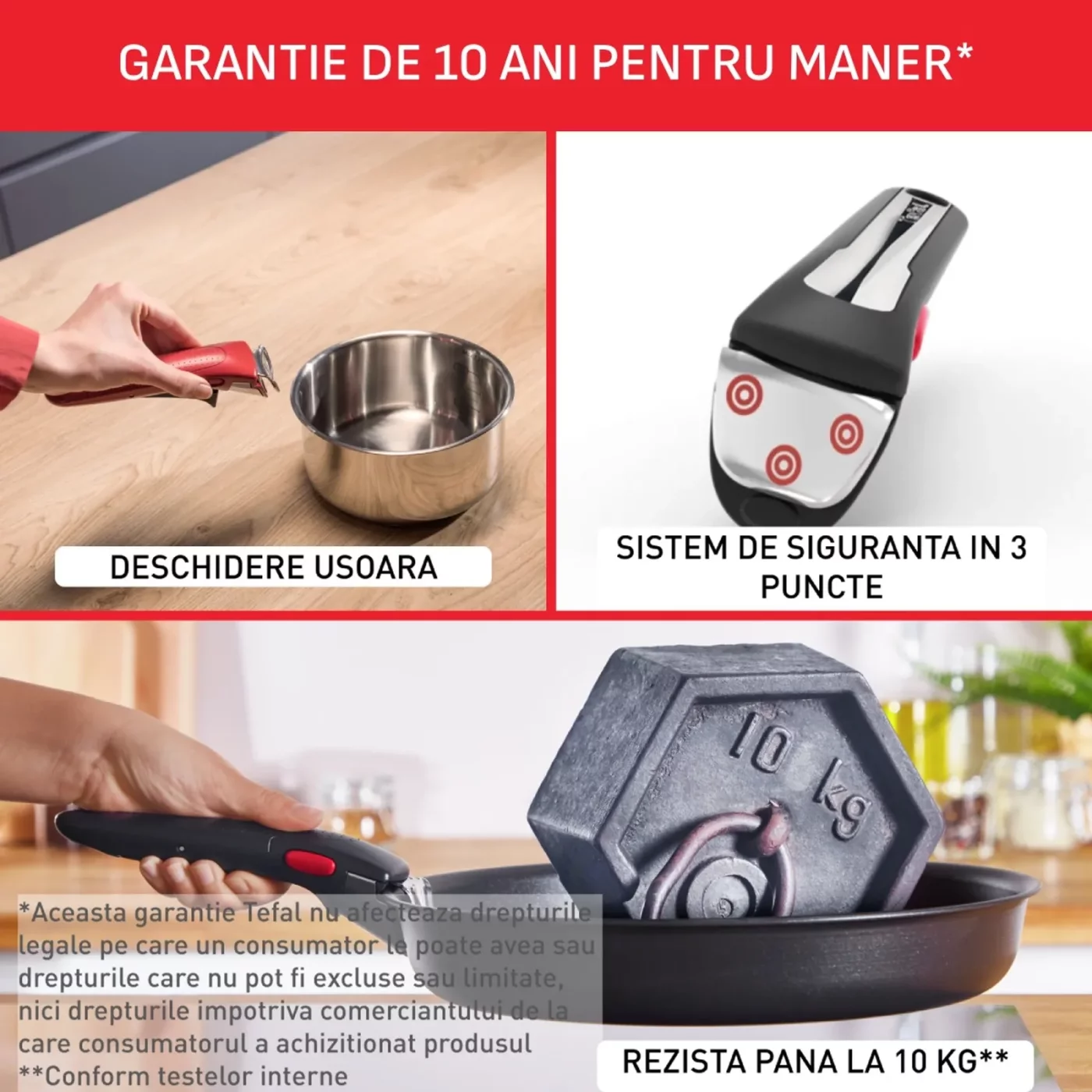 Всяка част е проектирана за максимален комфорт: подвижна дръжка, тенджери и тигани лесни за почистване благодарение на високоефективното незалепващо покритие, подходящи за съдомиялна машина. Включените аксесоари (капаци, шпатули, предпазители) правят готвенето по-безопасно и по-организирано.