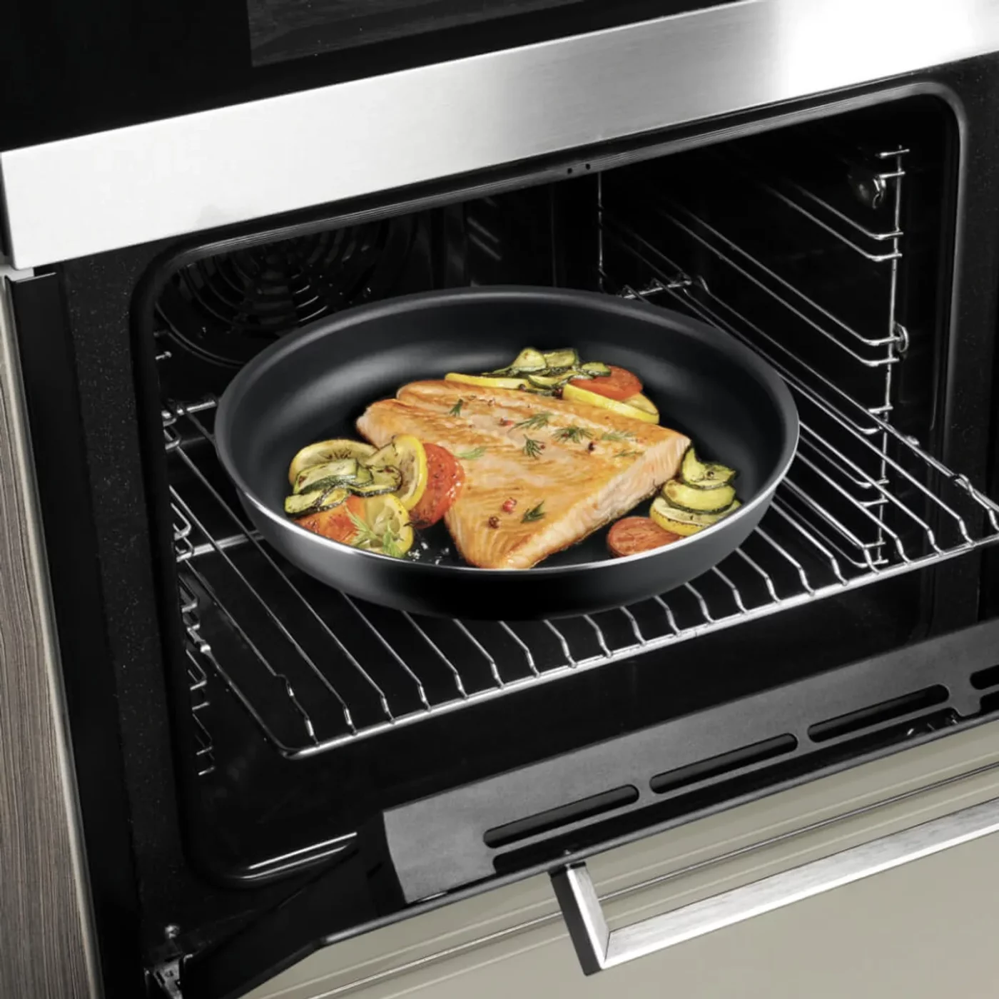 Индикаторът Thermo-Signal™ става червен, когато тиганът достигне оптималната температура, гарантирайки сочни ястия с перфектна текстура. Дъното Diffusion+ разпределя топлината равномерно по цялата повърхност за готвене, предотвратявайки локално загаряне и осигурявайки хомогенни резултати.
