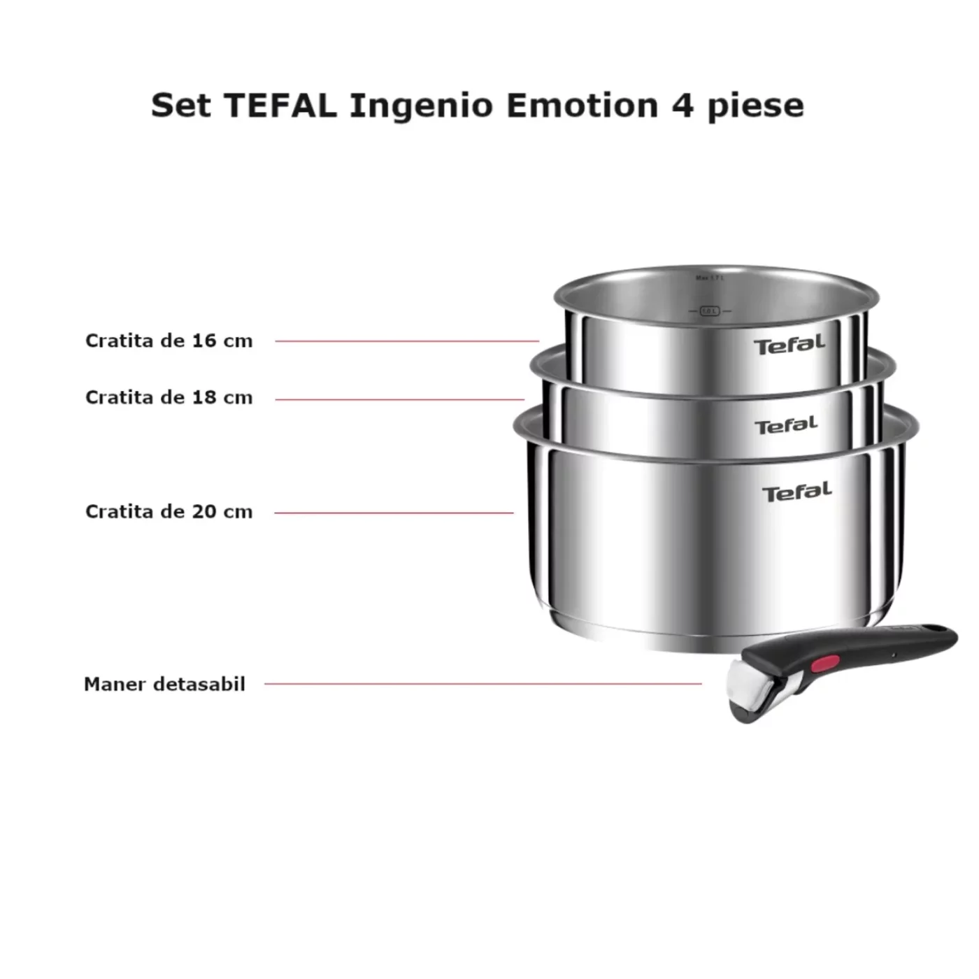 Tefal Ingenio Emotion L8964S55 комплект от 4 части – тенджери от неръждаема стомана 16, 18, 20 см с подвижна дръжка