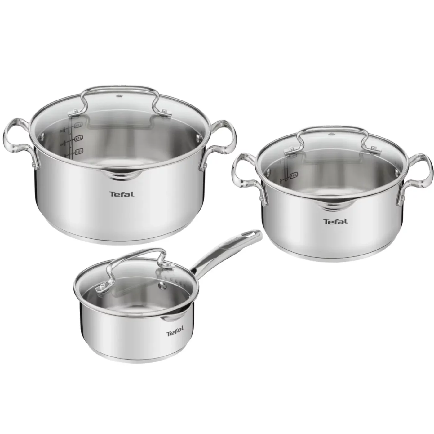 Подобрете кухненското си изживяване с комплекта от 6 първокласни съдове за готвене от неръждаема стомана Tefal Duetto+ G719S655. Комплектът включва тенджери с диаметър 20 см и 24 см, плюс тенджера с диаметър 16 см, всички с лесни за изливане ръбове и вътрешни градуировки. Стъклените капаци имат специални отвори за бързо наливане. Дебелото дъно осигурява равномерно разпределение на топлината, което прави комплекта идеално съвместим с всички източници на топлина, включително индукционни котлони. Интелигентен дизайн с нитовани дръжки за повишена безопасност.
