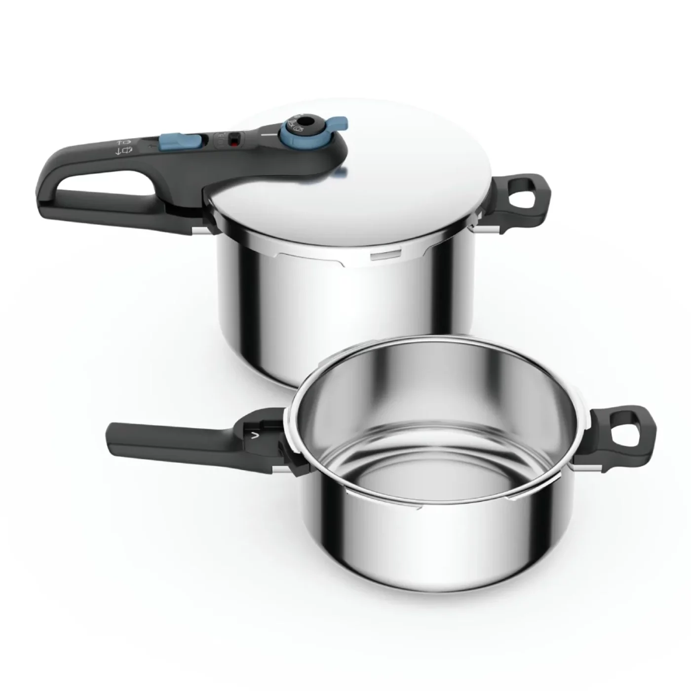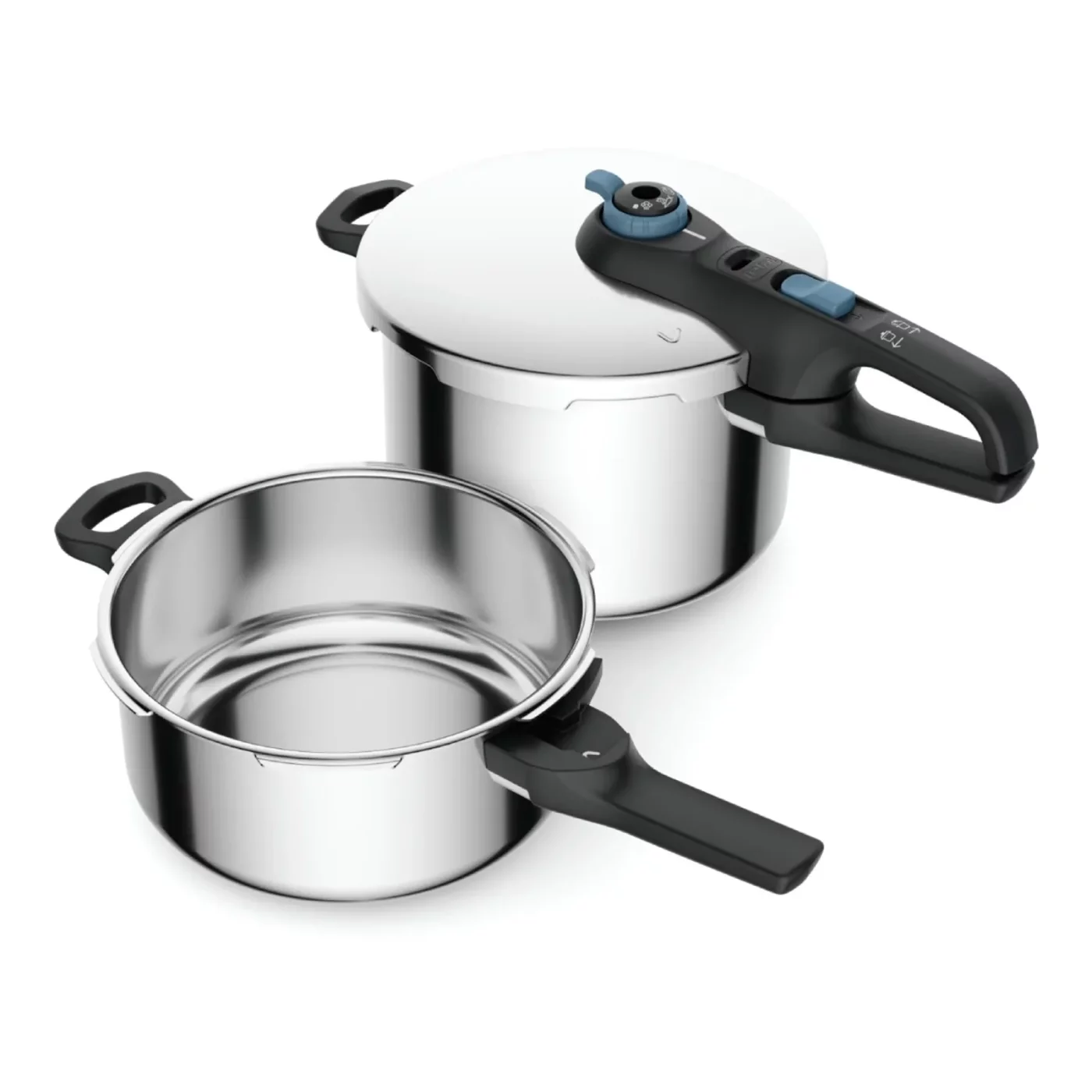 Комплект от 2 тенджери под налягане Tefal Secure Trendy P2584301, 4 л и 6 л, Индукция, 2 програми за готвене, 5 точки за безопасност, Неръждаема стомана, Сребрист