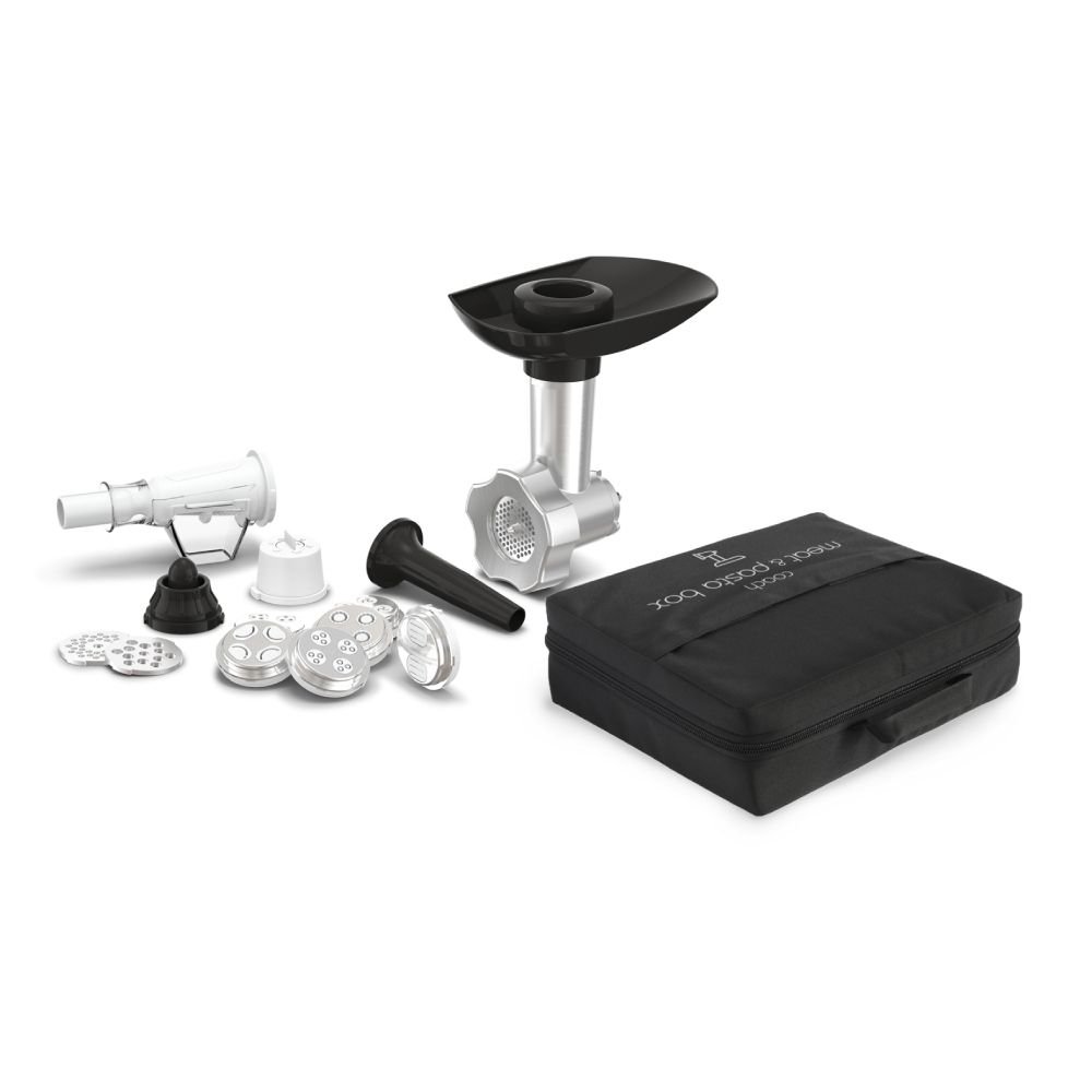 Превърнете кухненския си робот в пълен кулинарен асистент с комплекта Tefal Coach Meat & Pasta XF651038 . Този универсален 5-в-1 комплект ви позволява да приготвяте впечатляващо разнообразие от рецепти у дома, от прясно смляно месо за бургери или кюфтета до традиционни наденички и кебап. Комплектът е идеален за любителите на домашно приготвени ястия, предлагайки специални аксесоари за прясна паста и специален комплект за креативно оформени бисквити.