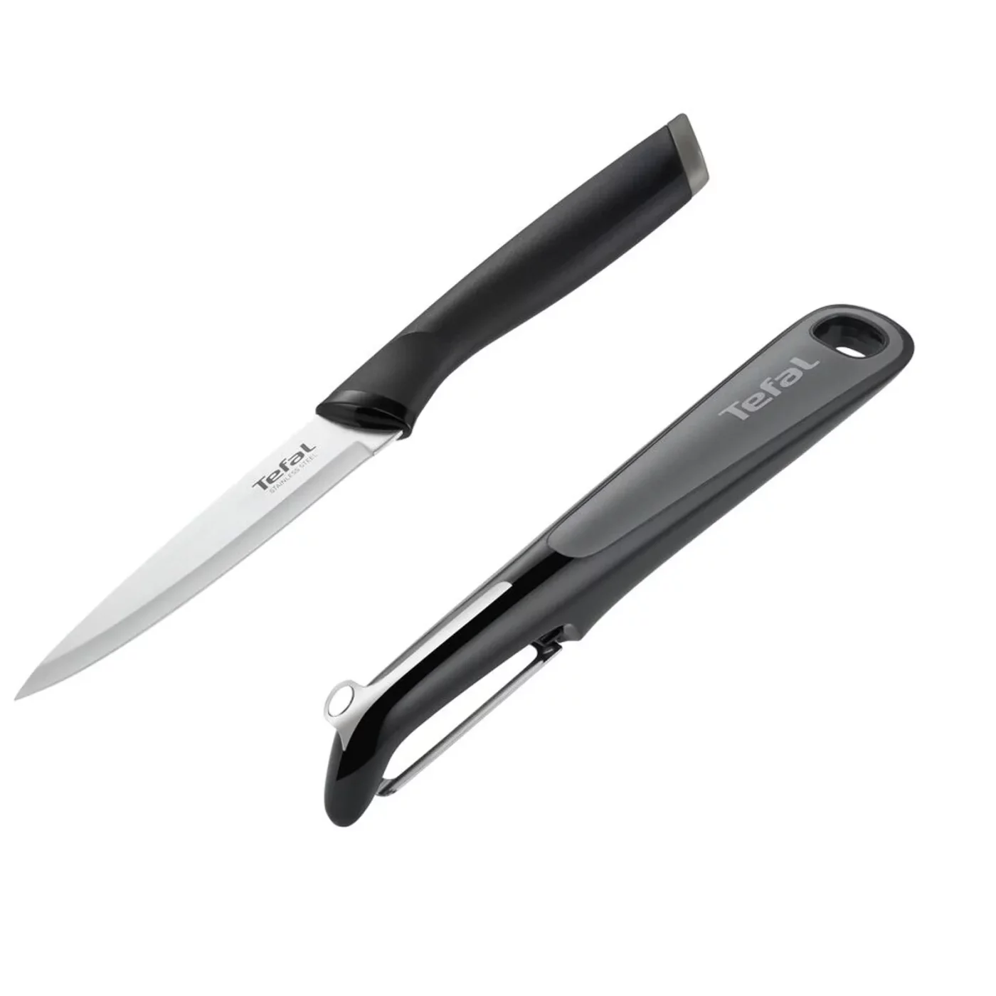 Tefal Essential Комплект за белене на зеленчуци K2219255, Универсален нож 12 см, Белачка, Дръжка с меко покритие, Неръждаема стомана