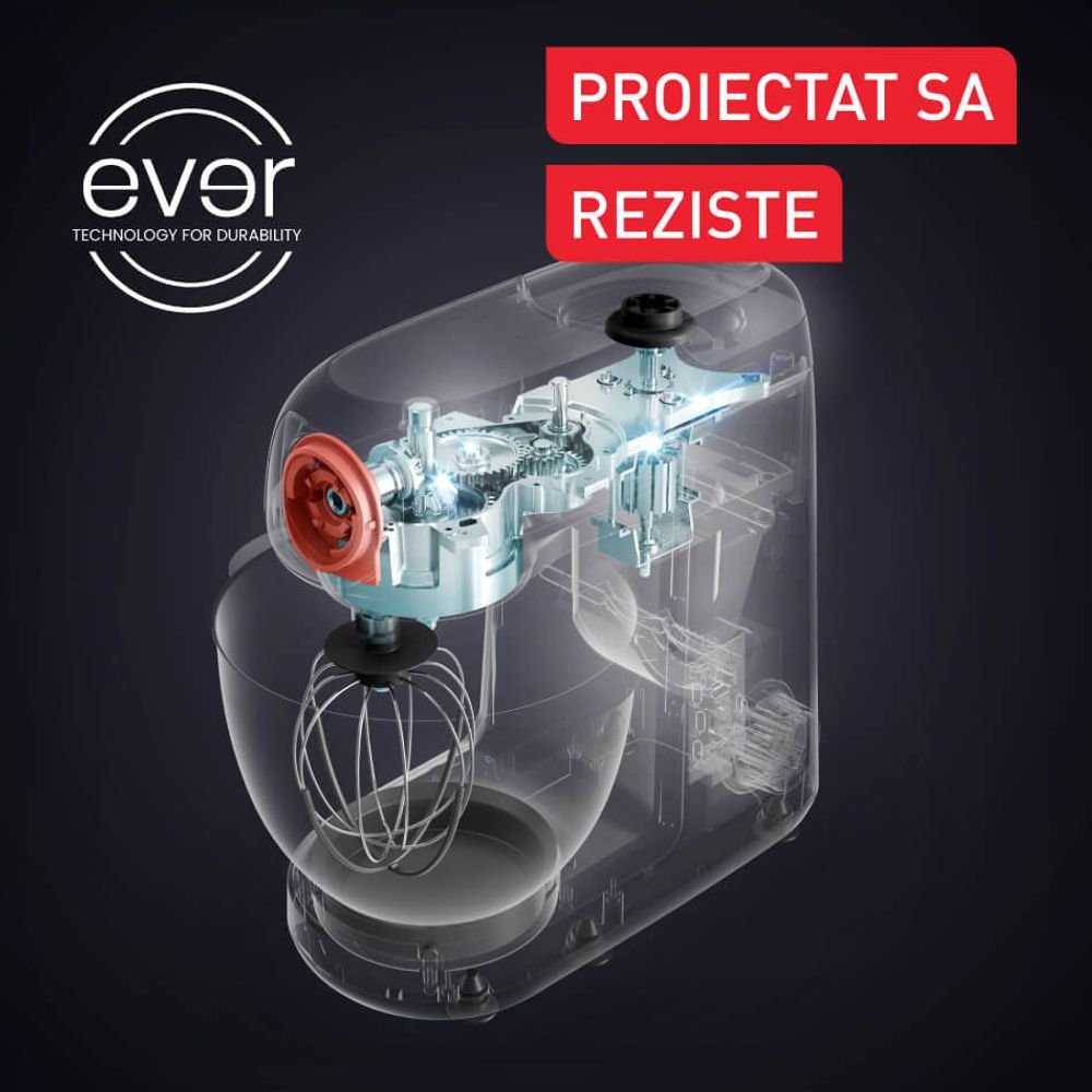 Акцентът на този модел е просторната купа от неръждаема стомана с обем 4,6 литра , която ви позволява да приготвяте големи количества храна за цялото семейство или за специални поводи. 8-те настройки за скорост , допълнени от функцията Pulse , предлагат абсолютен контрол върху процеса на смесване, осигурявайки перфектна хомогенизация на съставките. Патентованата технология на бъркалката гарантира аерирани и безупречни резултати, дори при работа с малък обем съставки.