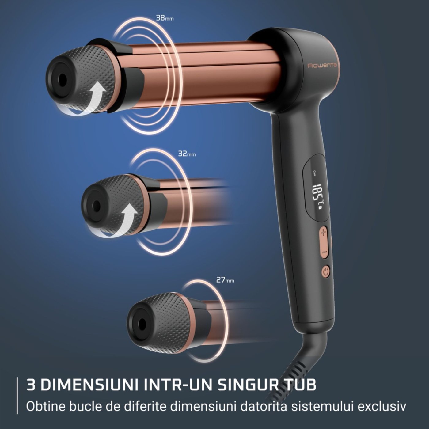 Открийте машата за коса Rowenta Twist Curl CF4620E0, иновативен инструмент за стилизиране, който ви осигурява перфектни къдрици у дома, бързо и без усилие. Оборудвана с 3-степенен регулируем диаметър (27/32/38 мм), тази маша ви позволява да създавате разнообразни визии – от стегнати и дефинирани къдрици до свободни и естествени вълни – всичко това с едно просто завъртане на копчето.