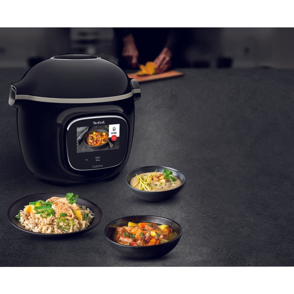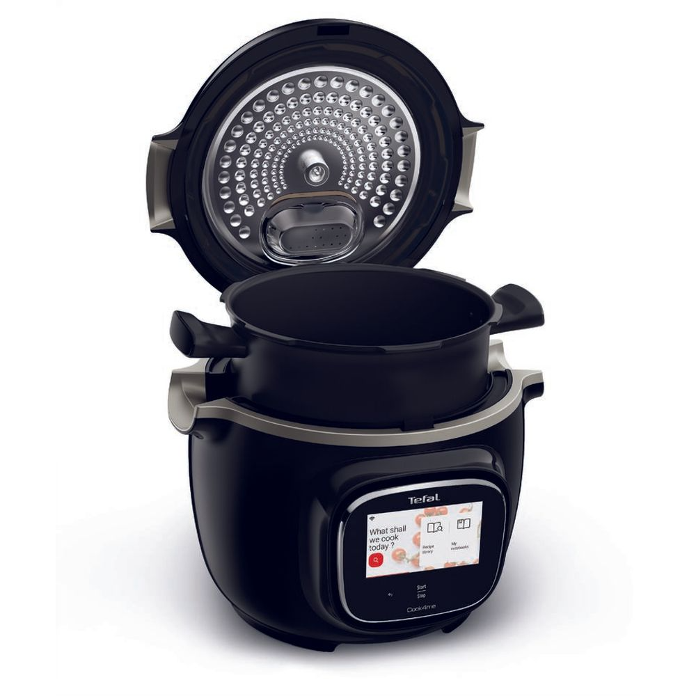 6-литровата тенджера за готвене с незалепващо керамично покритие е подходяща за съдомиялна машина, а мултикукърът автоматично освобождава налягането и поддържа храната топла до сервиране. С безплатното приложение My Tefal можете да откривате нови румънски и международни рецепти, да организирате менюто си с функцията „План на хранене“ и бързо да намирате рецепти въз основа на съставките, които вече имате у дома.