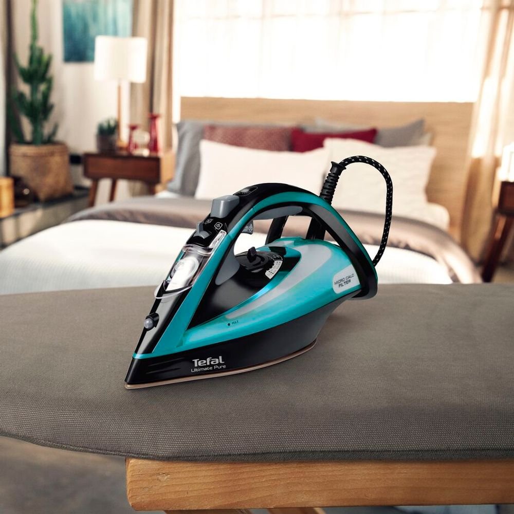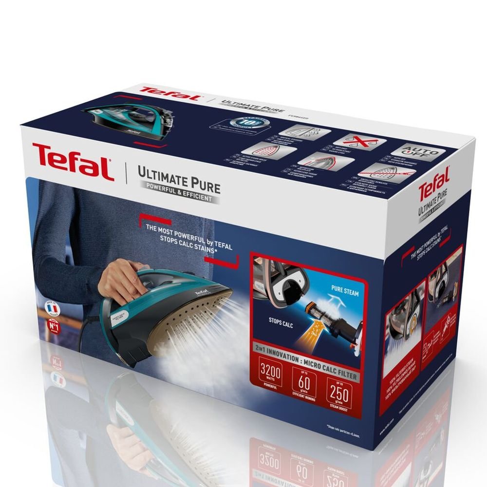 Подарете на дрехите си първокласната грижа, която заслужават, с Tefal Ultimate Pure FV9844E0 - ултра-високопроизводителна ютия, която съчетава сурова мощност с иновативна технология за филтриране. Със забележителната си мощност от 3200 W , този модел осигурява изключително бързо нагряване и постоянен поток от пара за ефективно премахване на всякакви гънки от всякакъв вид тъкан.