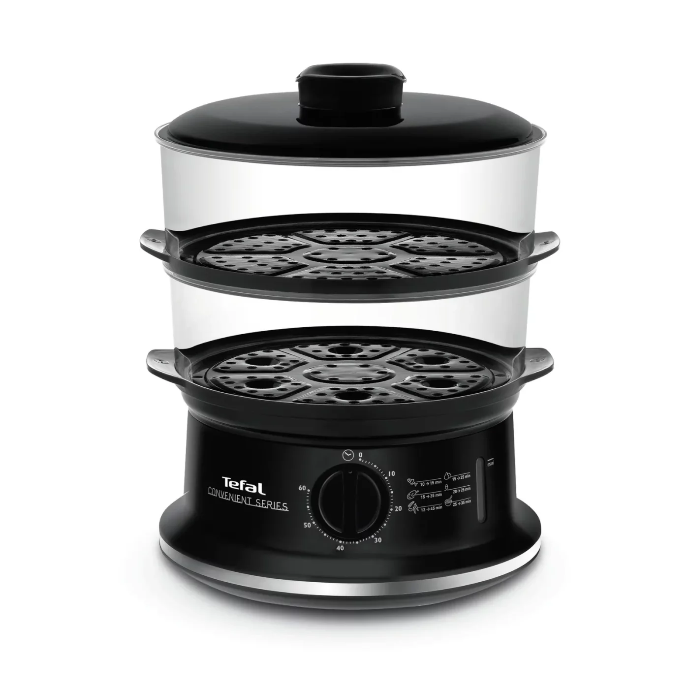 Tefal Convenient Series Пароварна VC140131, 900W, 6L, 2 тенджери, Черна