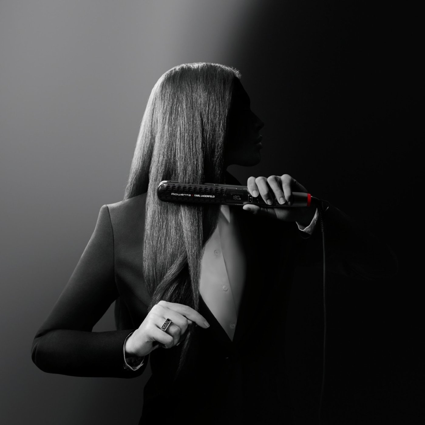 Преса за коса Rowenta x Karl Lagerfeld Optiliss SF323LF0, Keratin & Glow, регулируема температура до 230 °C