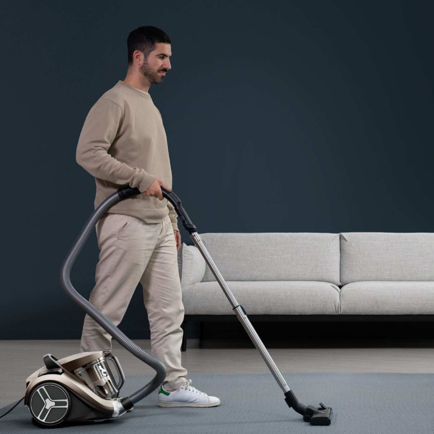 Компактният и лесен за употреба дизайн на прахосмукачката я прави практична за съхранение и употреба в труднодостъпни места. С обхват до 8,8 м можете да се движите без постоянно да сменяте контакти, а бързото изпразване на контейнера прави поддръжката лесна и хигиенична.