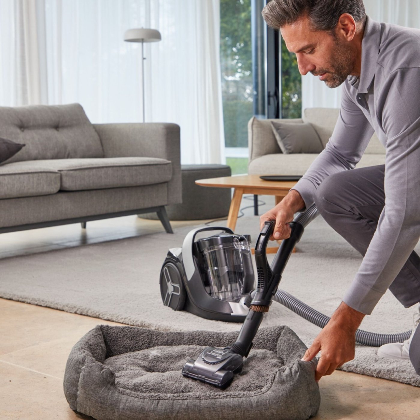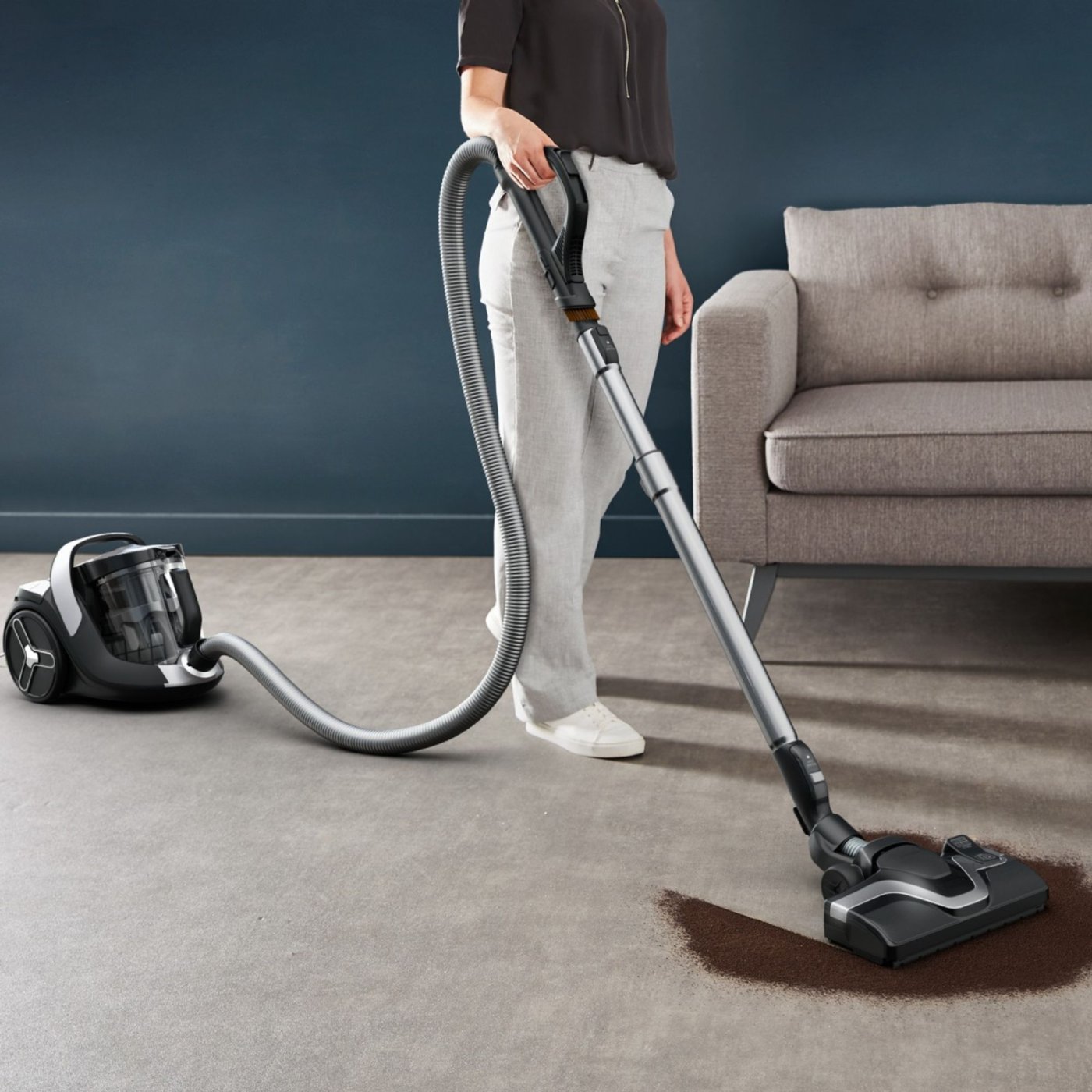 Големият контейнер от 2,5 литра ви позволява да почиствате повече, без да го изпразвате често, а HEPA филтърът с минимална ефективност от 99,98% задържа дори най-фините прахови частици - идеален за семейства с чувствителни хора или домашни любимци.