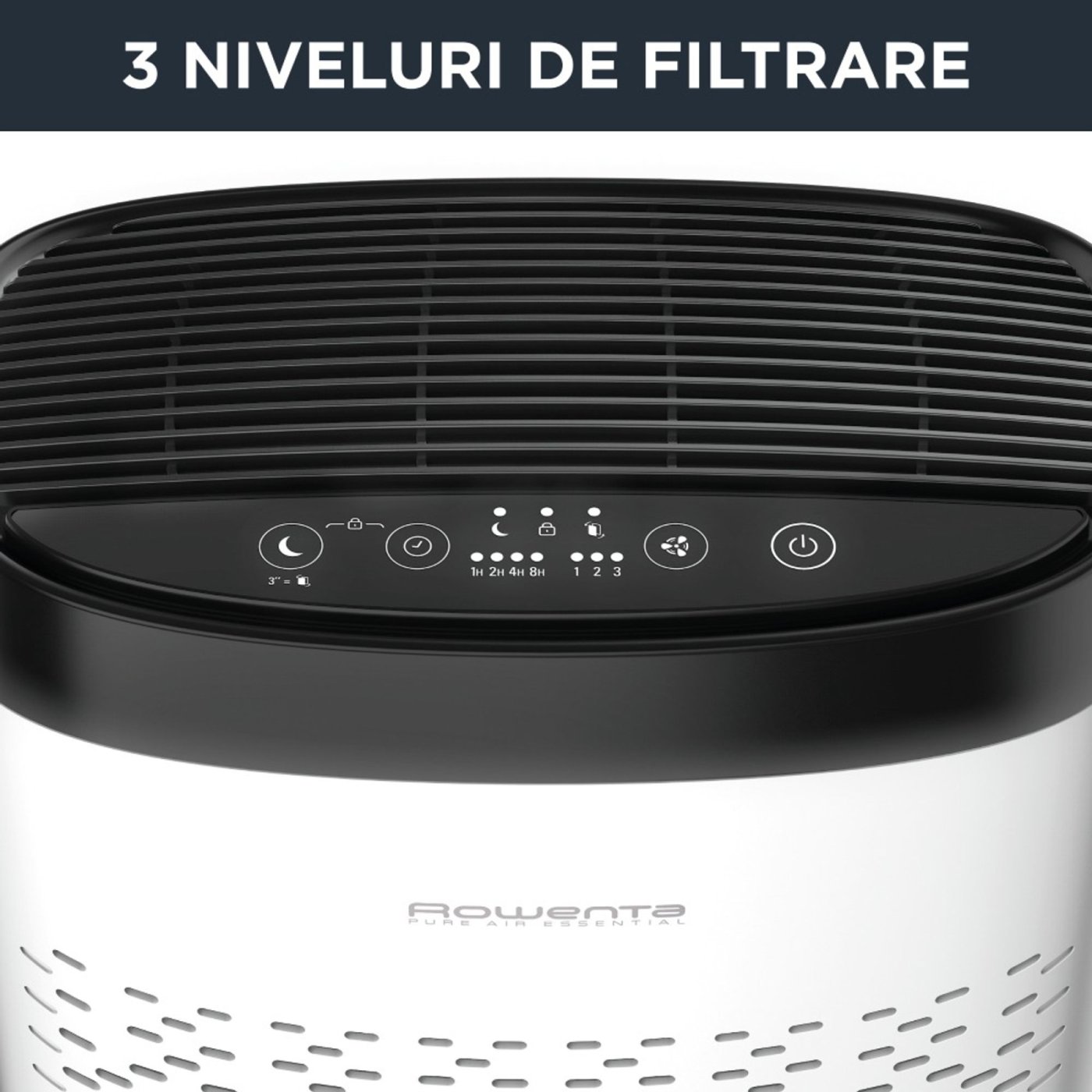 Пречиствател на въздух Rowenta Pure Air Essentials PU2530F0, филтрация 230 м³/ч, 3 скорости, таймер Дебит на чист въздух до 230 м3/ч, идеален за помещения до 90 м2; Капацитет за пречистване на стая от 10 м2 само за 7 минути; 3 нива на филтрация за от ...