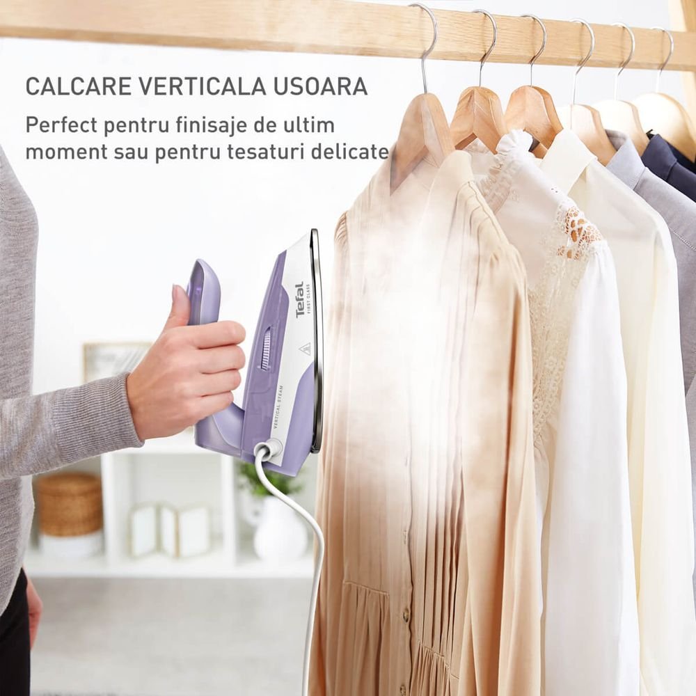 Парна ютия Tefal Express Steam FV2835E0, 2400W, Керамична гладеща повърхност, Система против прокапване, Лилаво/Бяло