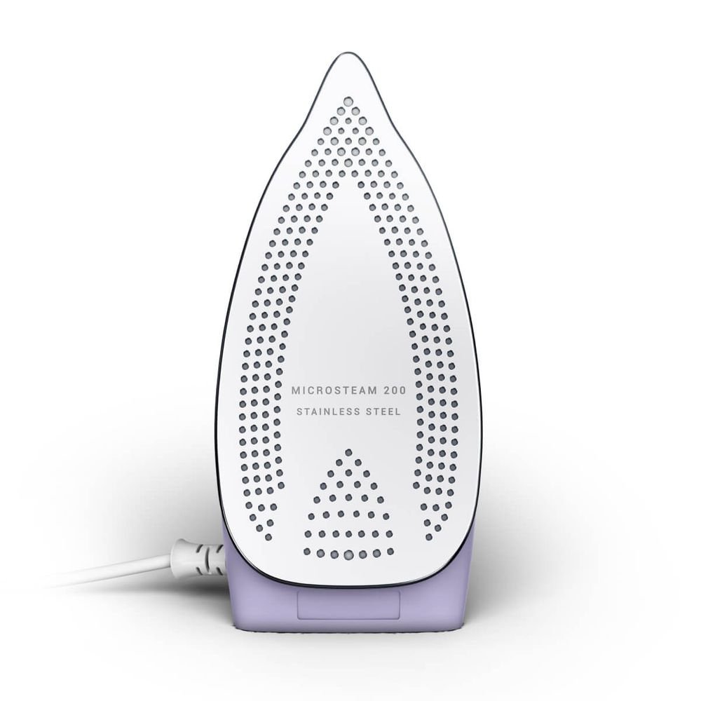 Прецизност и ефективност в малък формат. Въпреки малкия си размер, DB1612E0 не прави компромис с производителността. Уникалната патентована гладеща плоча Microsteam 200 с 200 микроотвора осигурява отлично разпределение на парата, предпазвайки тъканите. Профилираният връх ви позволява да гладите прецизно около копчета и яки, а функцията за вертикална пара е идеална за бързо довършване директно на закачалката.
