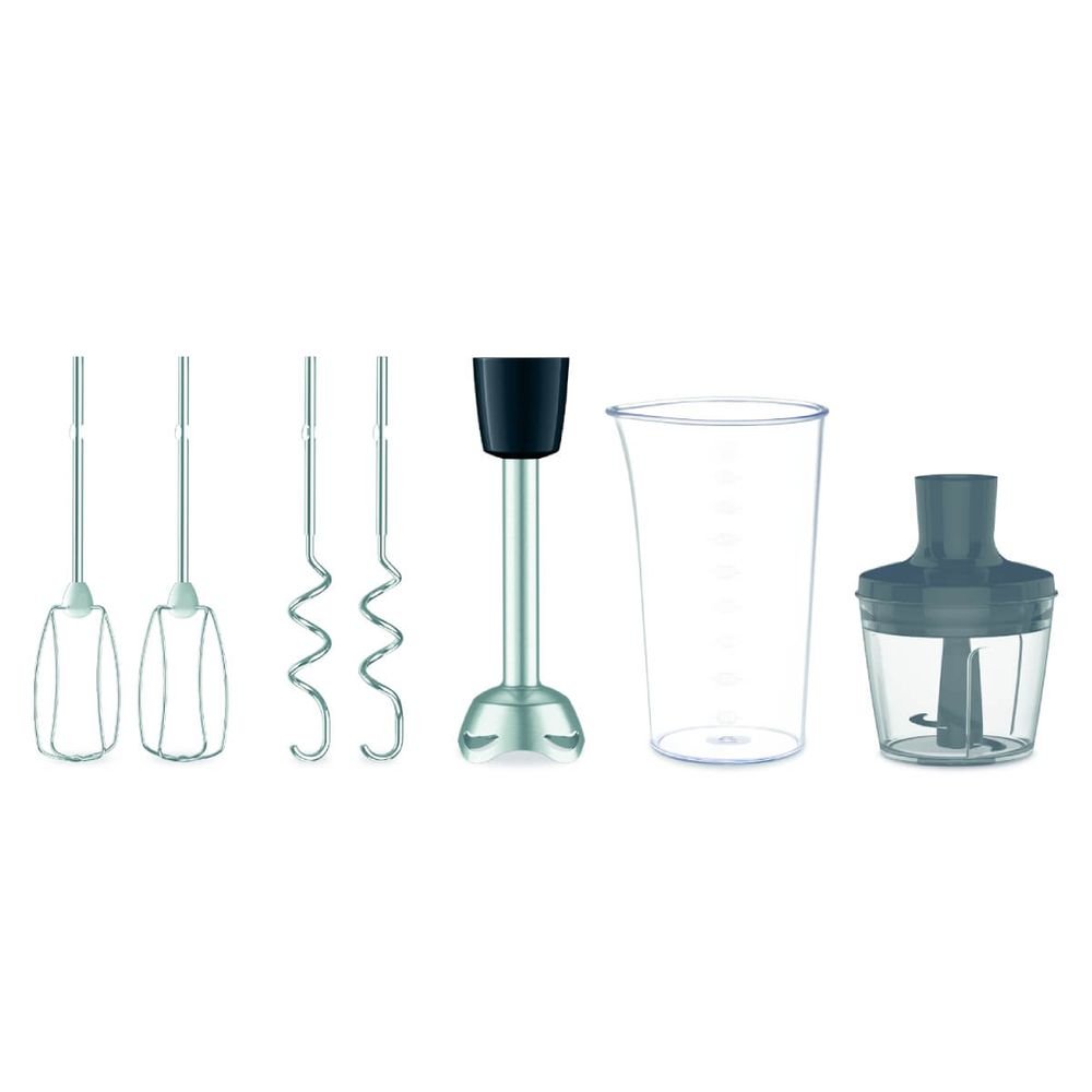 С 6 скорости и функцията Turbo , миксерът се адаптира перфектно към всяка текстура, от аерирана пяна до тежки теста за хляб или пица. Разширеният комплект включва бъркалка от неръждаема стомана и мерителна чаша , което ви дава възможност да използвате устройството като вертикален блендер за кремообразни супи или смутита. Ергономичната дръжка с мек материал осигурява сигурен захват, а висококачествените аксесоари от неръждаема стомана са подходящи за съдомиялна машина, гарантирайки перфектна хигиена и издръжливост във времето. Модерният дизайн в ярко червено добавя стилно нотка към всяка кухня, страстно отдадена на ефективността и тишината.