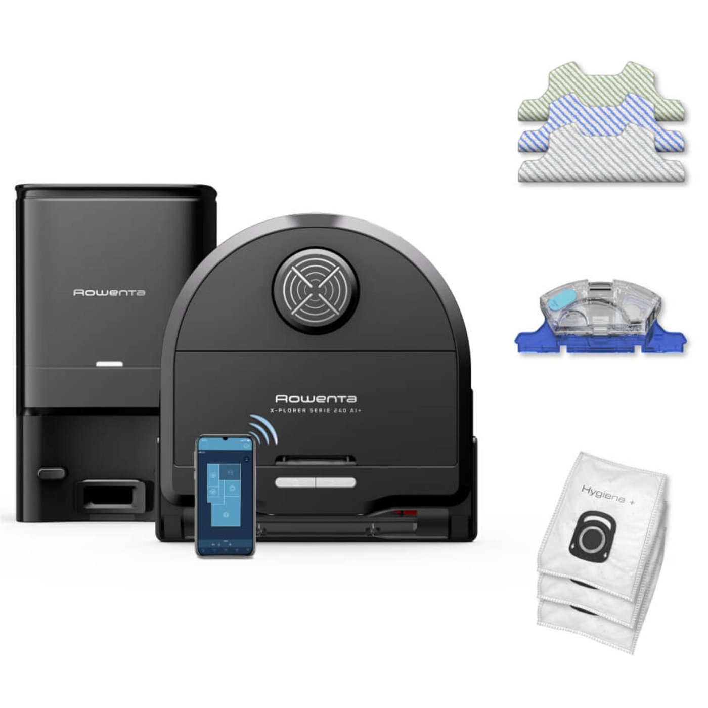 Rowenta X‑Plorer Serie 240 AI+ RR9695WH роботизирана прахосмукачка с моп, Smart Aqua Power, 120 мин. автономност, 8000 PA Всмукателна мощност 8000 PA; Специализирано приложение, съвместимо с гласов асистент; Виртуални стени чрез приложението; 120 минут ...
